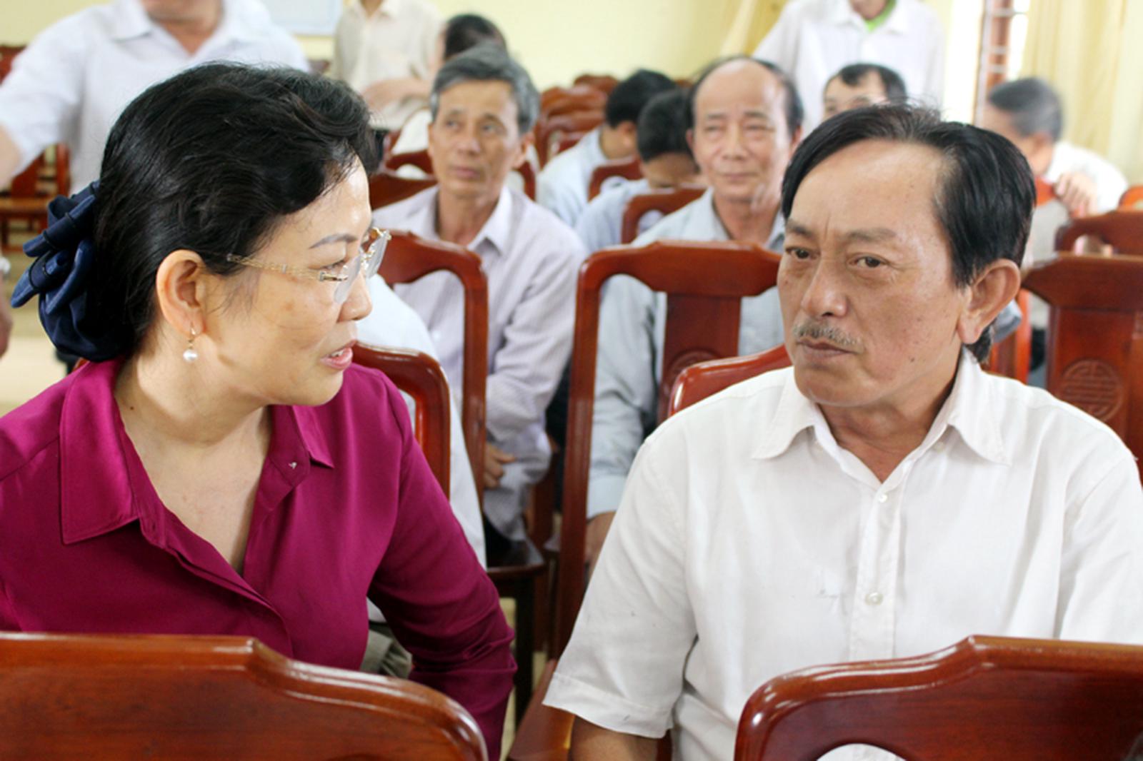 Chia sẻ với cử tri, Phó Tổng Thanh tra Lê Thị Thủy cho biết sẽ kiến nghị với Ủy ban Thường vụ Quốc hội tổ chức giám sát chuyên đề về giải quyết đơn thư khiếu nại, tố cáo và các vấn đề an sinh xã hội... Ảnh: PH