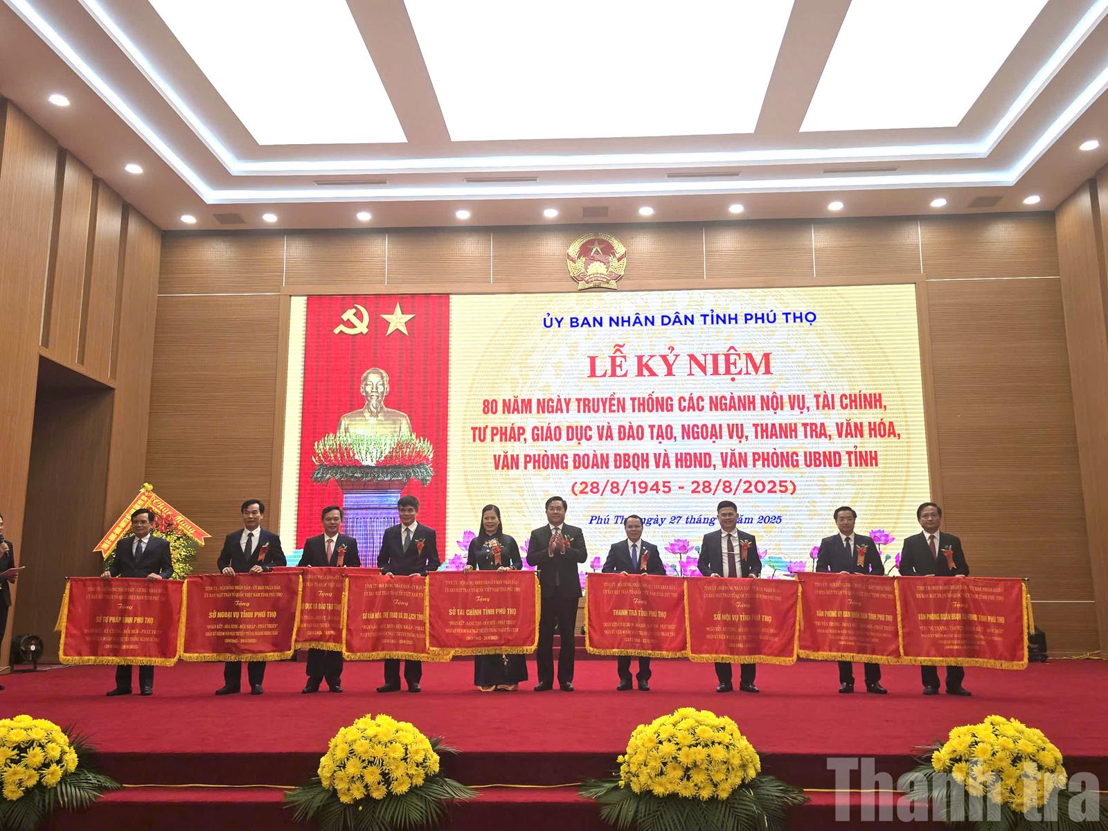 (Thanh tra) - Chiều 27/8, UBND tỉnh Phú Thọ tổ chức Lễ kỷ niệm 80 năm ngày Truyền thống các ngành Nội vụ, Tài chính, Tư pháp, Giáo dục và Đào tạo, Ngoại vụ, Thanh tra, Văn hóa, Văn phòng Đoàn ĐBQH và HĐND, Văn phòng UBND tỉnh (28/8/1945 - 28/8/2025).