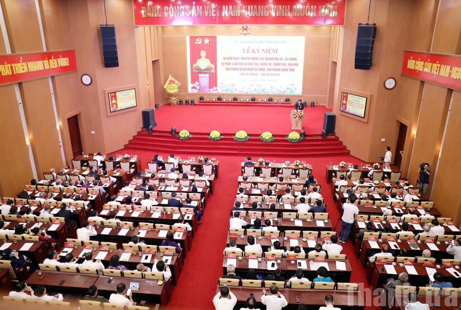 Diễn văn kỷ niệm do Chủ tịch UBND tỉnh Phú Thọ Trần Duy Đông trình bày khẳng định: Hòa chung trong không khí hân hoan của toàn Đảng, toàn dân, toàn quân ta nhân kỷ niệm 80 năm Cách mạng tháng Tám và Quốc khánh 2/9, Lễ kỷ niệm 80 năm ngày Truyền thống của 9 ngành: Nội vụ, Tài chính, Tư pháp, Giáo dục và Đào tạo, Ngoại vụ, Thanh tra, Văn hóa, Văn phòng là dịp để ôn lại truyền thống vẻ vang, tri ân sự cống hiến của các thế hệ cán bộ, công chức, viên chức, đồng thời, khẳng định quyết tâm mới của các sở, ngành nói riêng và của tỉnh Phú Thọ nói chung trong giai đoạn phát triển mới.
