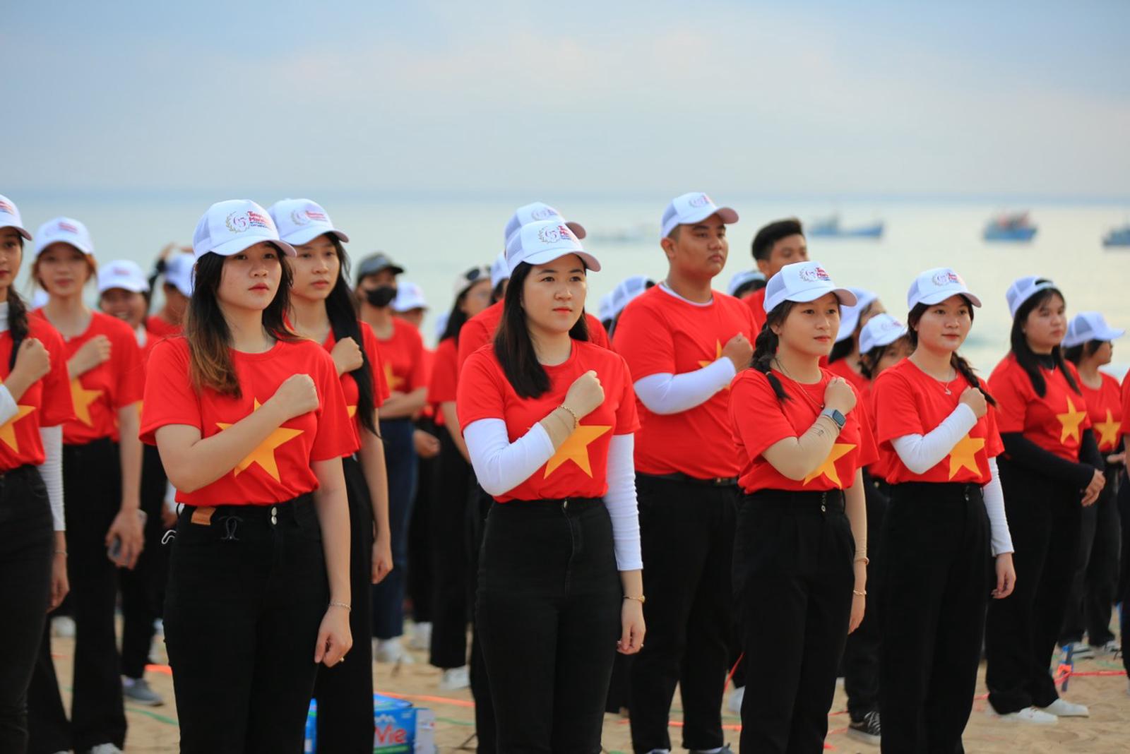 Một lá cờ rộng hơn 1.000m2 cũng được kéo trải dài trên bãi biển, thể hiện niềm tự hào dân tộc, lòng biết ơn sâu sắc đến các thế hệ đi trước đã hy sinh để bảo vệ Tổ quốc, xây dựng đất nước. Ảnh: ĐS