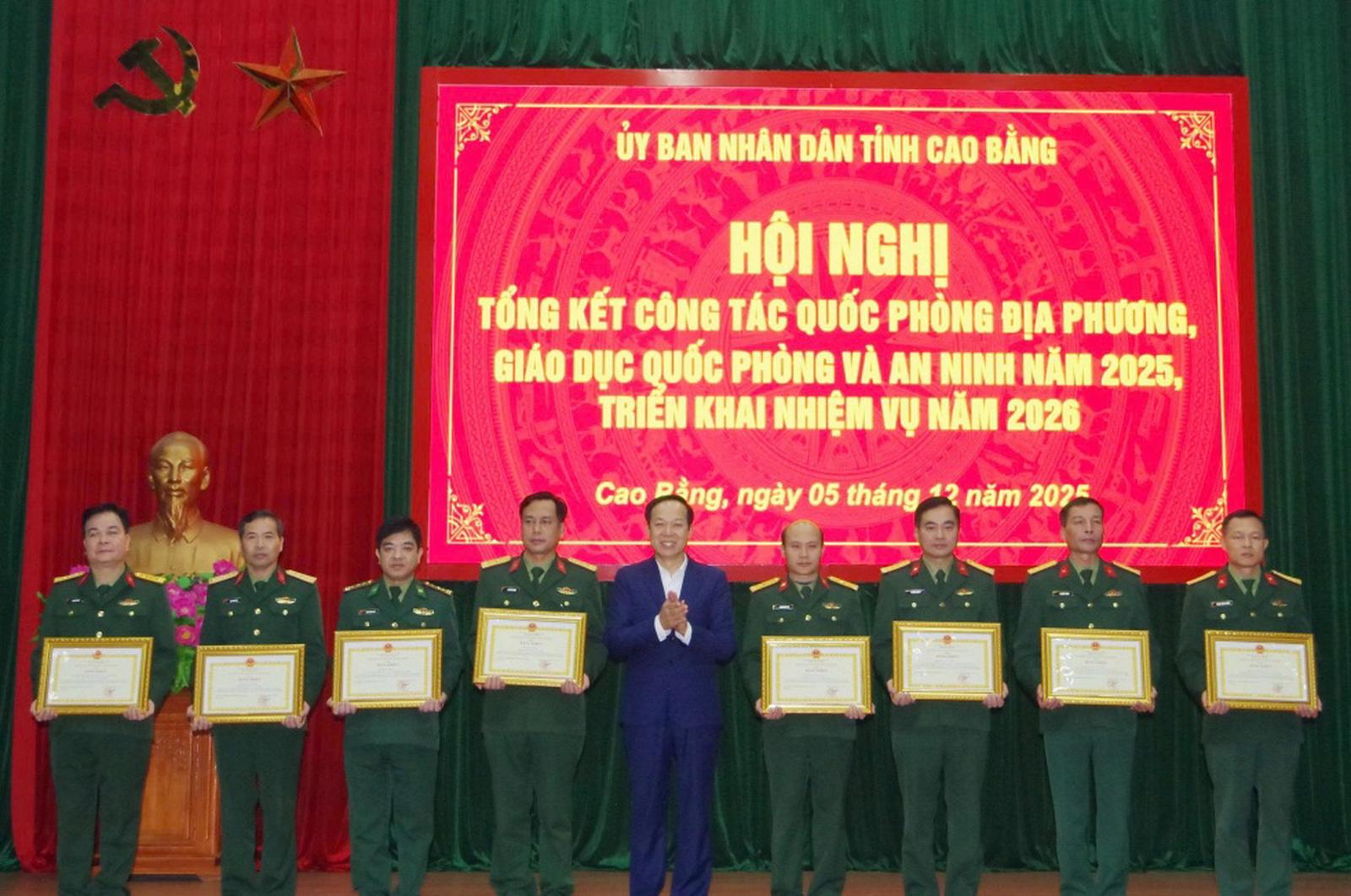 Nhân dịp này, UBND tỉnh Cao Bằng khen thưởng 4 tập thể, 6 cá nhân có thành tích xuất sắc trong công tác phòng, chống lụt bão; Quân khu khen thưởng 9 tập thể, 30 cá nhân; 16 tập thể, 55 cá nhân được Bộ CHQS tỉnh khen thưởng có thành tích xuất sắc trong công tác QPQS địa phương và phong trào Thi đua Quyết thắng năm 2025.