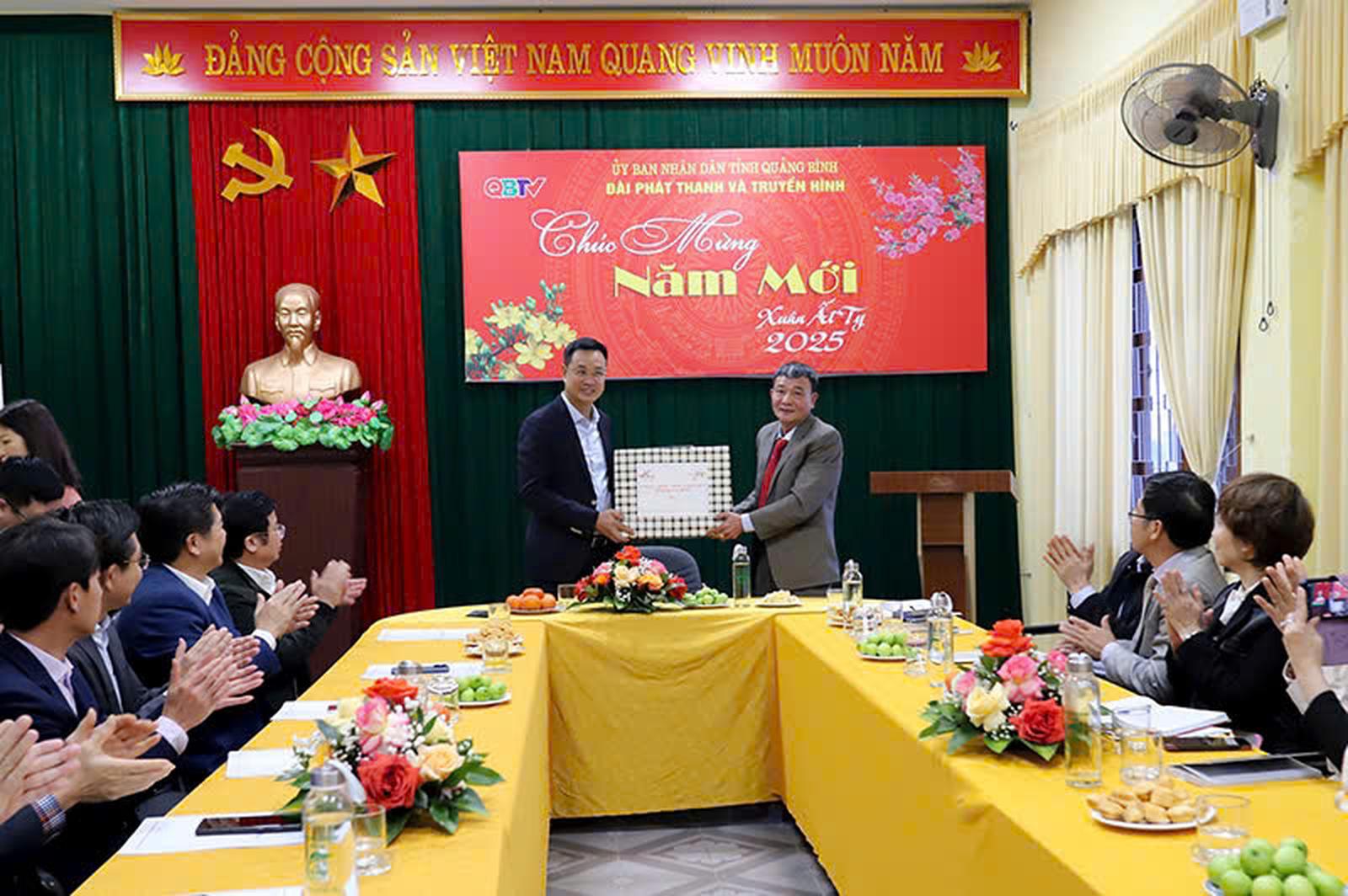 Bí thư Tỉnh uỷ thăm, chúc Tết Đài Phát thanh - Truyền hình Quảng Bình. Ảnh: BQB