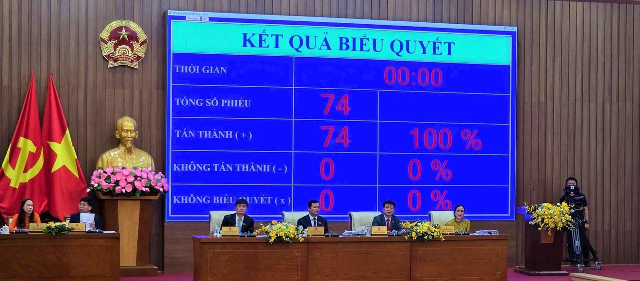 Kết quả biểu quyết Nghị quyết quy định chính sách hỗ trợ đặc thù về nhà ở, đi lại cho cán bộ, công chức, viên chức sau sáp nhập. Ảnh: TL