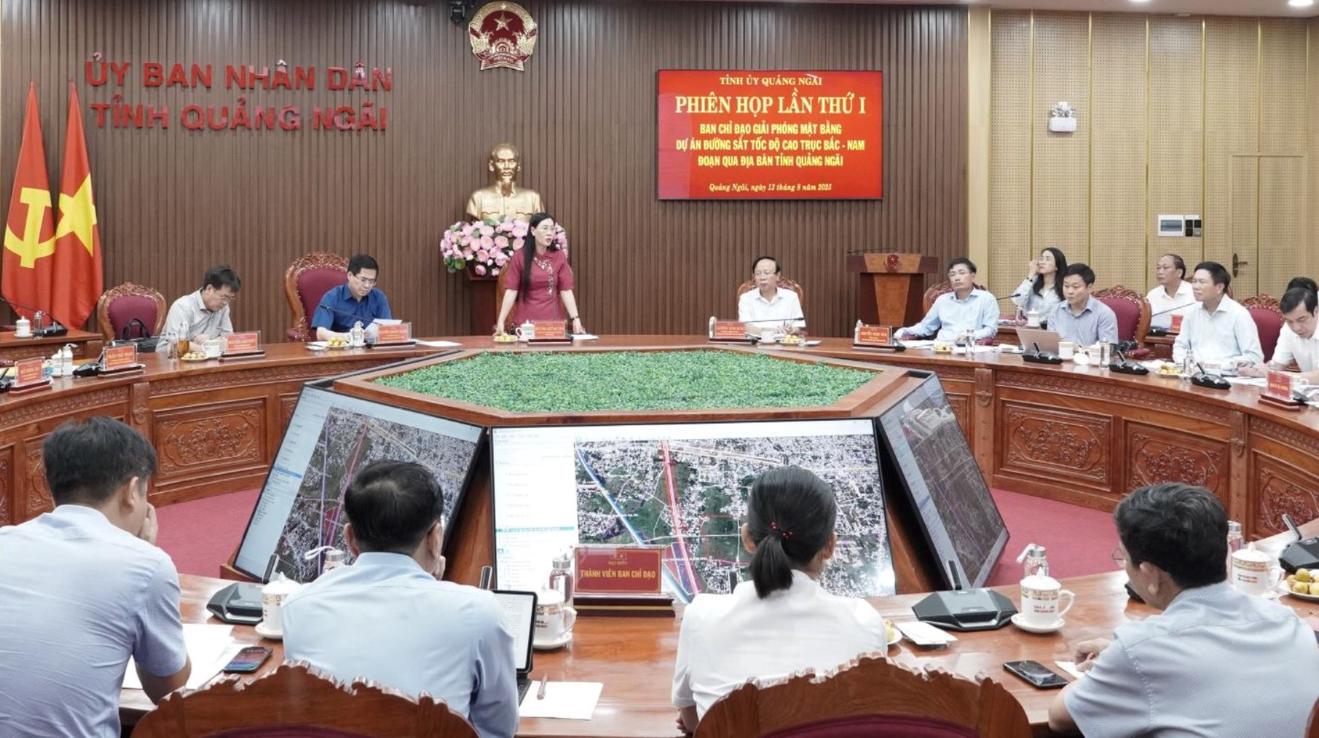 Tại buổi họp chiều nay bà Bùi Thị Quỳnh Vân, Bí thư Tỉnh ủy, Trưởng Ban Chỉ đạo Giải phóng mặt bằng dự án đường sắt tốc độ cao trục Bắc - Nam đoạn qua địa bàn tỉnh Quảng Ngãi đã chủ trì phiên họp lần thứ I của Ban Chỉ đạo.