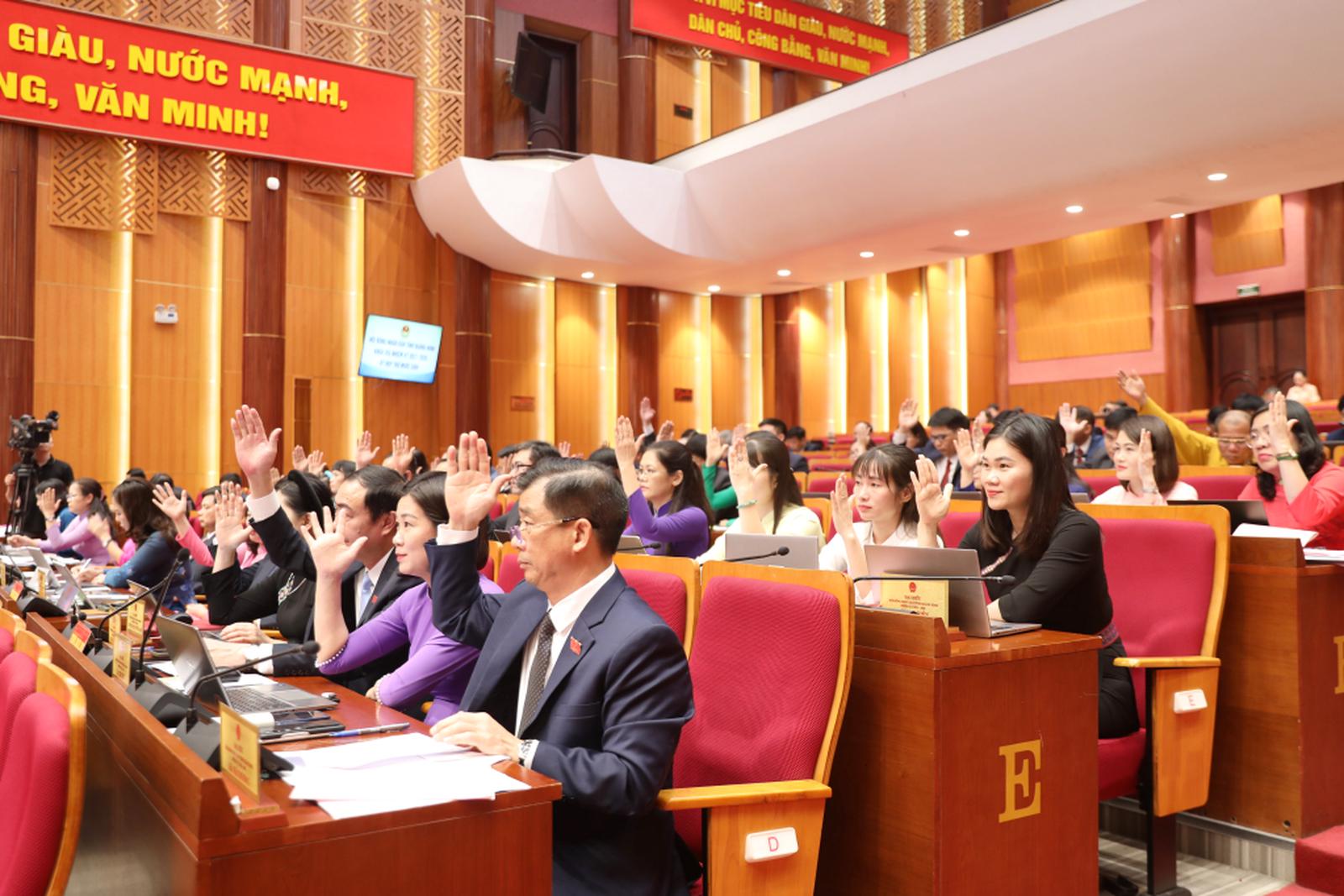Đại biểu HĐND tỉnh Quảng Ninh biểu quyết thông qua các nghị quyết tại kỳ họp. Ảnh: TTTT