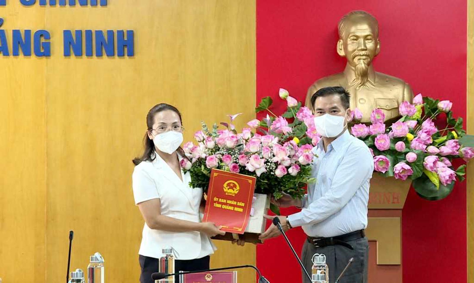 Phó Chủ tịch UBND tỉnh Quảng Ninh Nguyễn Thị Hạnh trao quyết định của UBND tỉnh cho ông Nguyễn Mạnh Hà. Ảnh: TTTT