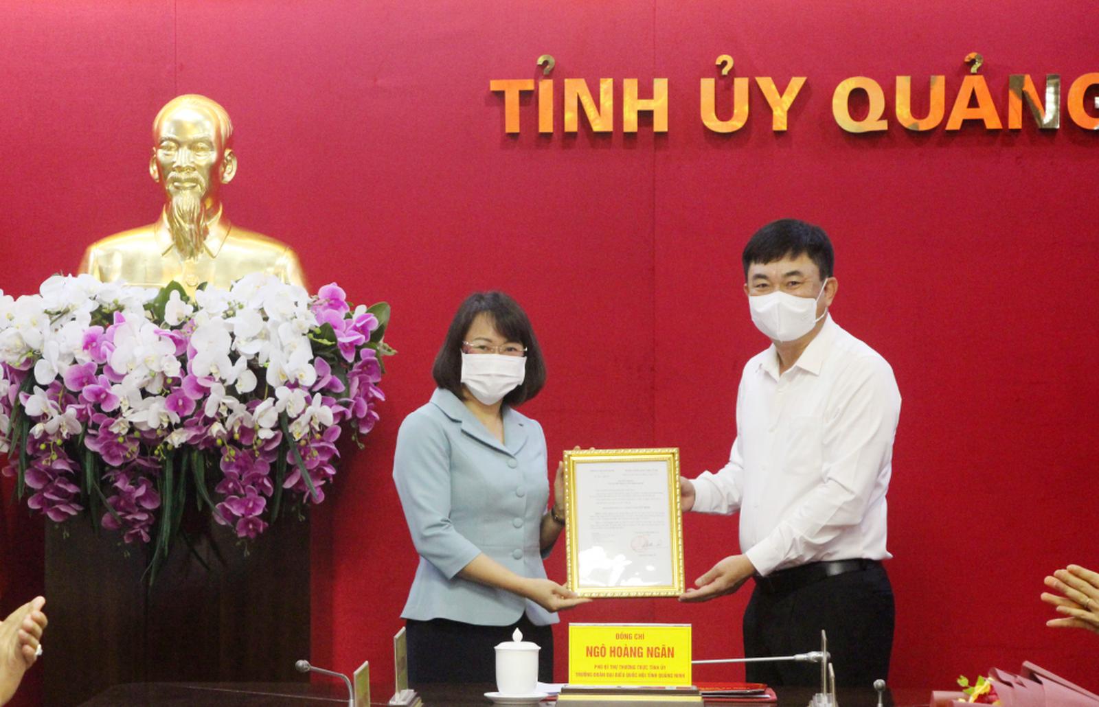 Phát biểu chúc mừng, Phó Bí thư Thường trực Tỉnh ủy Quảng Ninh Ngô Hoàng Ngân nhấn mạnh, cả hai đồng chí đều đã trải qua nhiều cương vị công tác, hoạt động chuyên sâu, có nhiều kinh nghiệm trong công tác xây dựng Đảng, đoàn thể và cũng đã khẳng định được năng lực, trình độ trong quá trình làm việc. Những kinh nghiệm công tác đó đáp ứng, thỏa mãn điều kiện, môi trường công tác mới, nhiệm vụ mới.