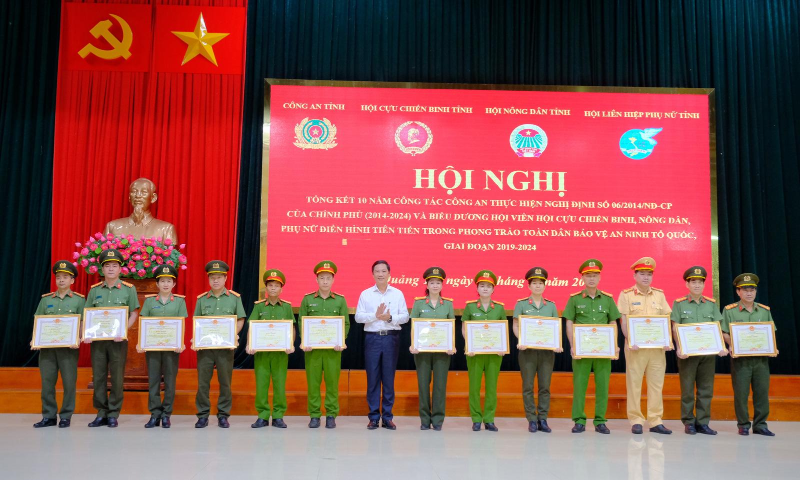 Tại Hội nghị, Ban Dân vận Trung ương đã tặng Kỷ niệm chương "Vì sự nghiệp dân vận" cho 4 cá nhân trong lực lượng Công an tỉnh Quảng Trị vì có nhiều đóng góp cho sự nghiệp công tác dân vận của Đảng. UBND tỉnh, Công an tỉnh, Hội Cựu chiến binh tỉnh, Hội Liên hiệp Phụ nữ tỉnh Quảng Trị đã tặng bằng khen, giấy khen cho nhiều tập thể, cá nhân có thành tích xuất sắc trong thực hiện phong trào toàn dân bảo vệ ANTQ giai đoạn 2019 – 2024.