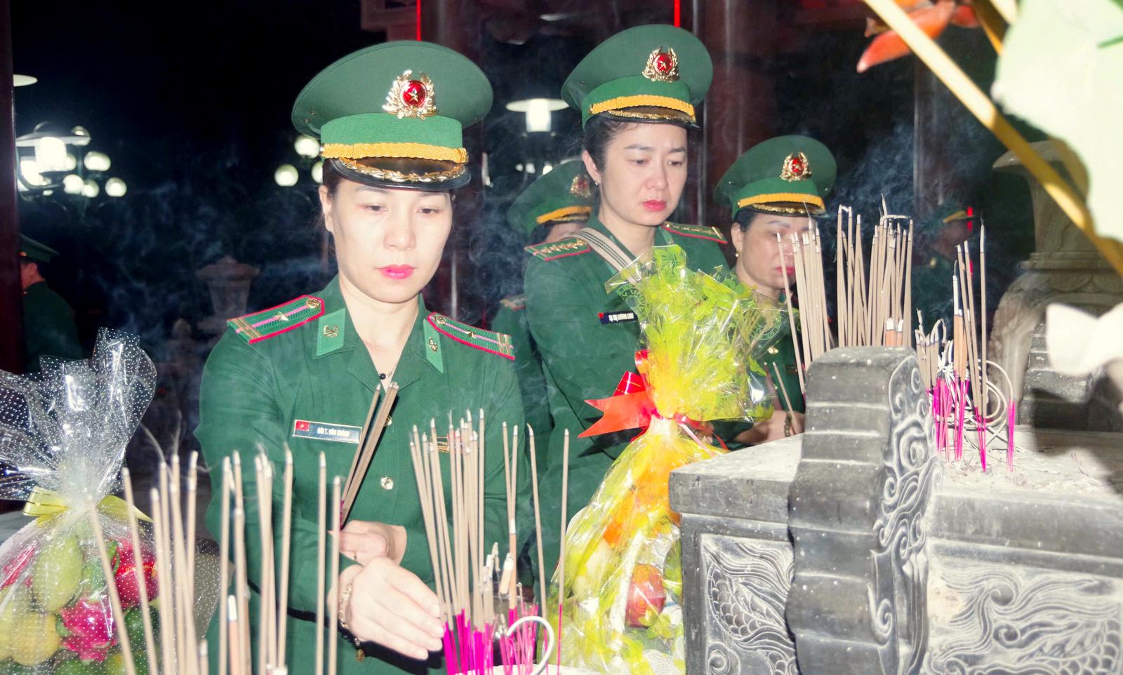 Các cán bộ, chiến sĩ BĐBP tỉnh Quảng Trị thắp hương tri ân, tưởng nhớ các Anh hùng liệt sĩ bên bờ sông Thạch Hãn. Ảnh: Minh Tân