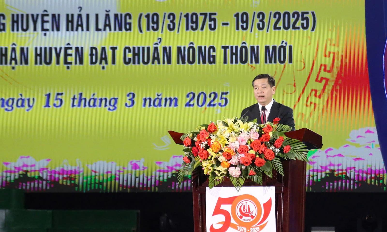 Phát biểu tại buổi lễ, Bí thư Tỉnh ủy Quảng Trị Nguyễn Long Hải chúc mừng và biểu dương những thành tựu mà Đảng bộ, chính quyền và Nhân dân huyện Hải Lăng đã đạt được trong 50 năm qua. Bí thư Tỉnh ủy Quảng Trị khẳng định: Hải Lăng hôm nay đã tạo nên kỳ tích "hoa trên cát" với sự hiện hữu của những làng quê đáng sống, những cánh rừng FSC bạt ngàn, cánh đồng lúa trĩu hạt, vườn cây trĩu quả. Huyện cũng nằm trong Khu kinh tế Đông Nam, nơi các dự án trọng điểm như Khu Công nghiệp Quảng Trị, Bến Cảng Mỹ Thủy đang được triển khai, mở ra cơ hội phát triển mới.