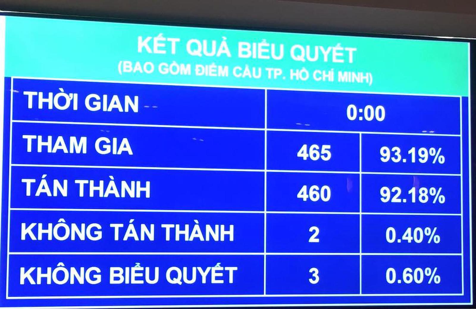 Kết quả biểu quyết thông qua Nghị quyết về kế hoạch cơ cấu lại nền kinh tế giai đoạn 2021-2025. Ảnh: TN