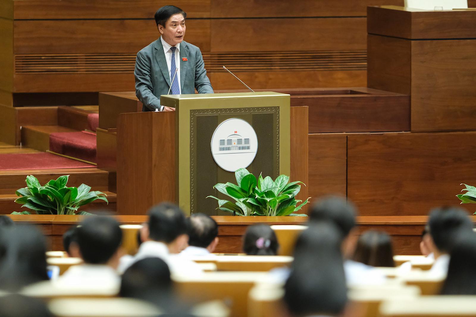 Tổng Thư ký Quốc hội Bùi Văn Cường trình bày báo cáo tiếp thu, giải trình ý kiến các đại biểu về dự kiến chương trình giám sát của Quốc hội năm 2023 trước khi biểu quyết. Ảnh: Đ.X