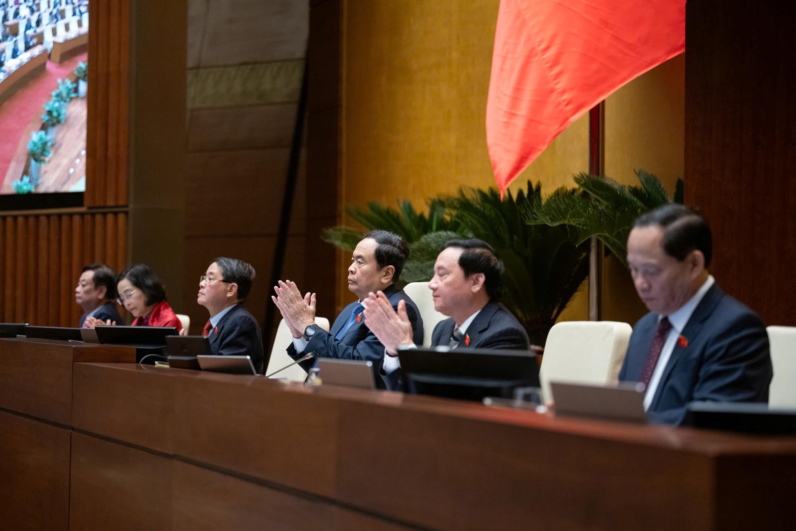 Quốc hội biểu quyết thông qua Luật Tổ chức chính quyền địa phương (sửa đổi) với 458/459 đại biểu Quốc hội có mặt bấm nút tán thành. Ảnh: P.Thắng
