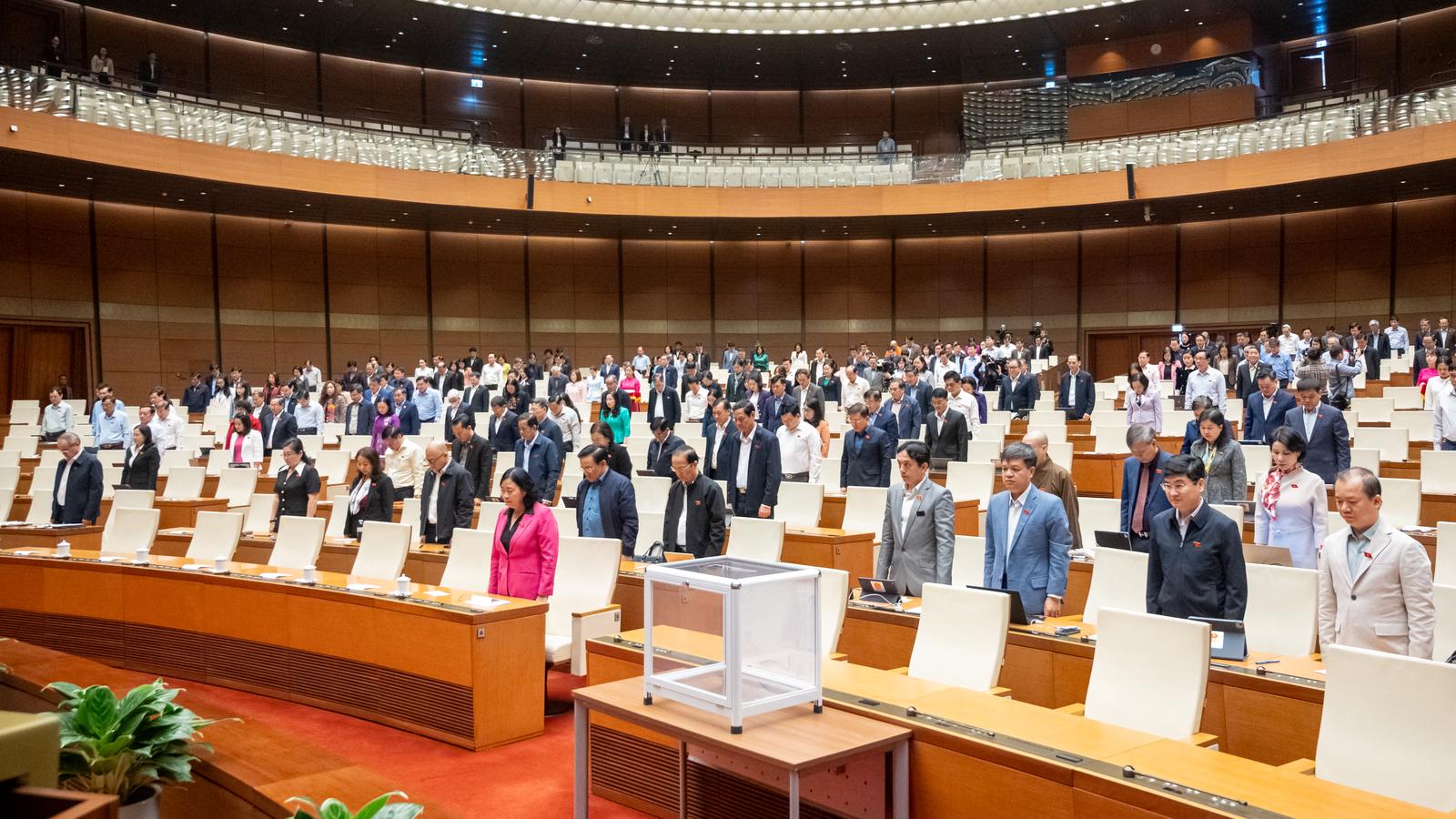 Quốc hội dành một phút tưởng niệm những người tử vong do thiên tai. Ảnh: P.Thắng