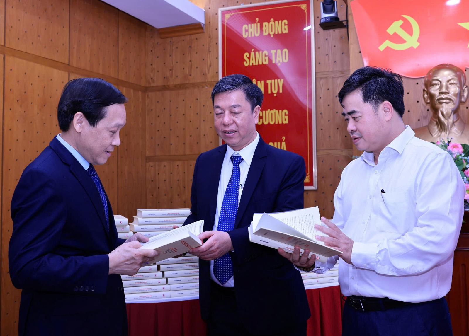 Ra mắt sách “Tiếp tục xây dựng và hoàn thiện Nhà nước pháp quyền xã hội chủ nghĩa Việt Nam”. Ảnh: Đ.P