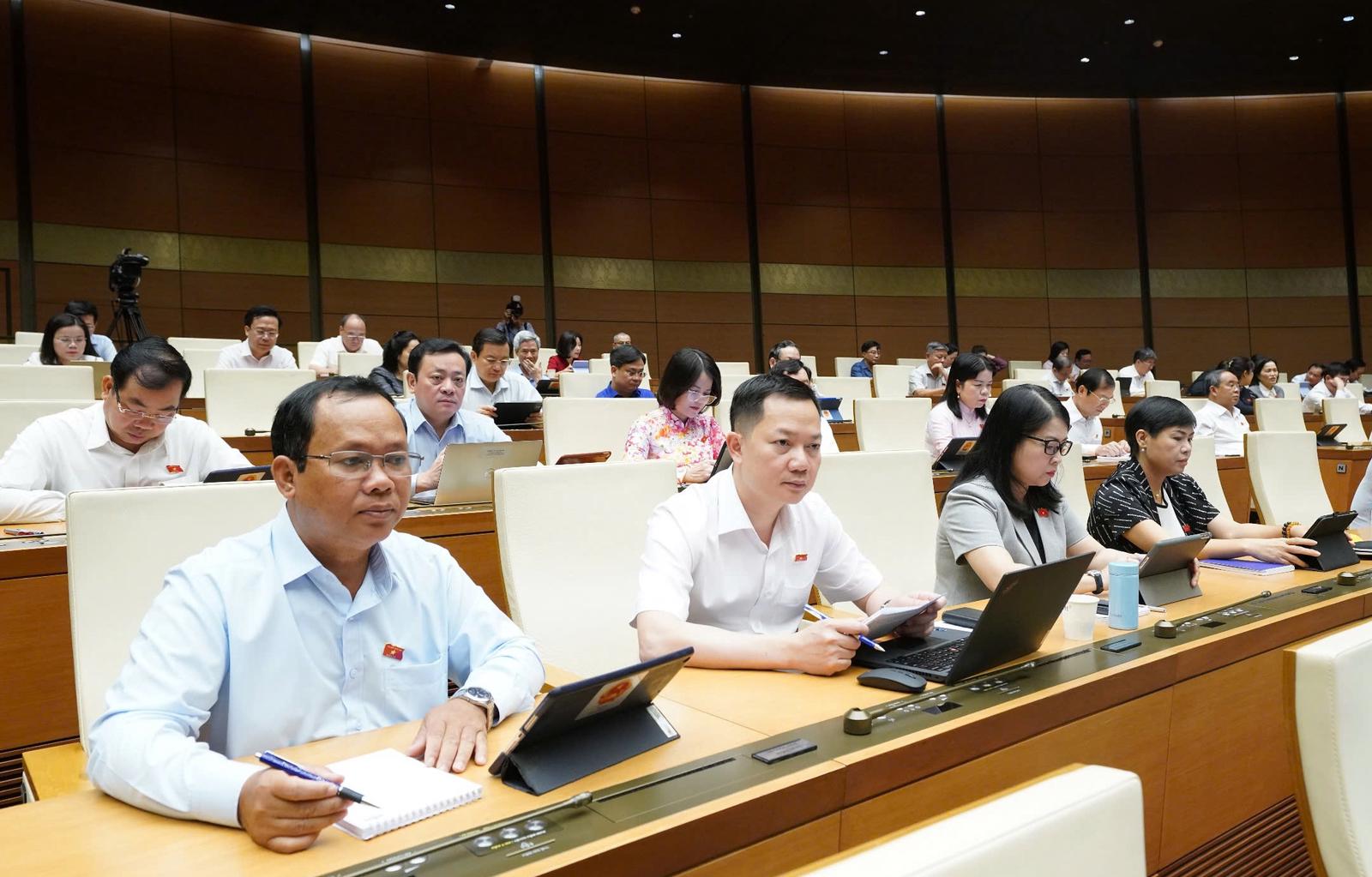 Quốc hội nghe các tờ trình về việc rút ngắn nhiệm kỳ Quốc hội khoá XV và HĐND các cấp nhiệm kỳ 2021 – 2026; về ngày bầu cử đại biểu Quốc hội khoá XVI và đại biểu HĐND các cấp nhiệm kỳ 2026 – 2031. Ảnh: P.Thắng
