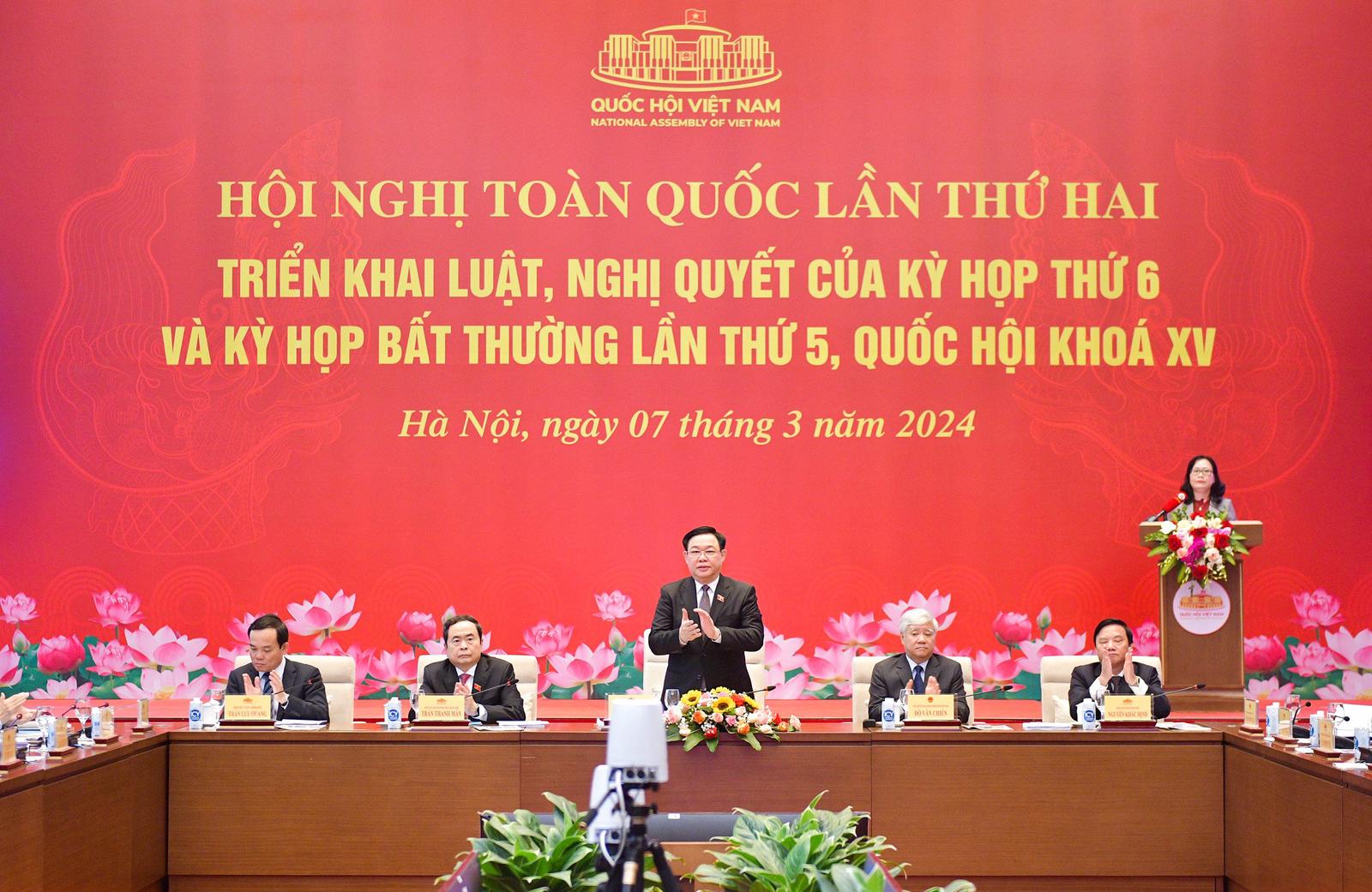Sáng 7/3, dưới sự chủ trì của Chủ tịch Quốc hội Vương Đình Huệ, Uỷ ban Thường vụ Quốc hội tổ chức hội nghị toàn quốc lần thứ hai triển khai luật, nghị quyết của kỳ họp thứ 6 và kỳ họp bất thường lần thứ 5, Quốc hội khóa XV.