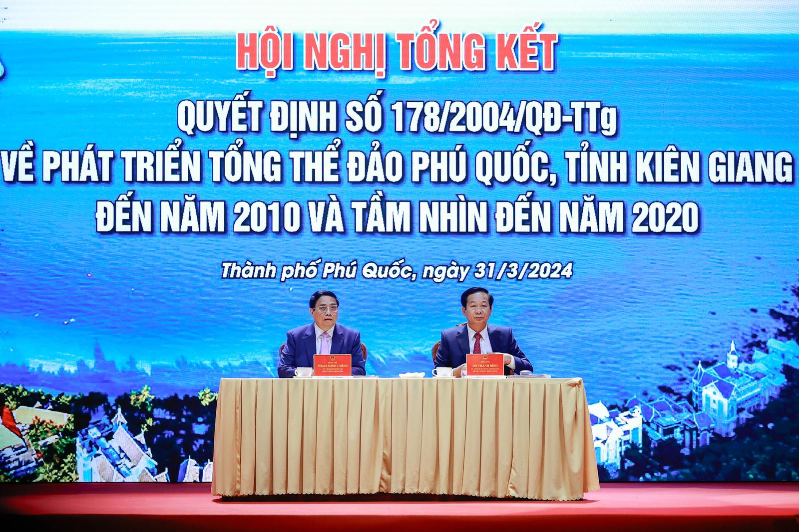 Thủ tướng đánh giá, sau 20 năm, Phú Quốc đã cơ bản đạt được các mục tiêu trong Đề án phát triển tổng thể Phú Quốc theo Quyết định số 178/2004/QĐ-TTg, khẳng định sự đúng, trúng, hiệu quả trong chủ trương, đường lối, chính sách của Đảng, Nhà nước với Phú Quốc.
