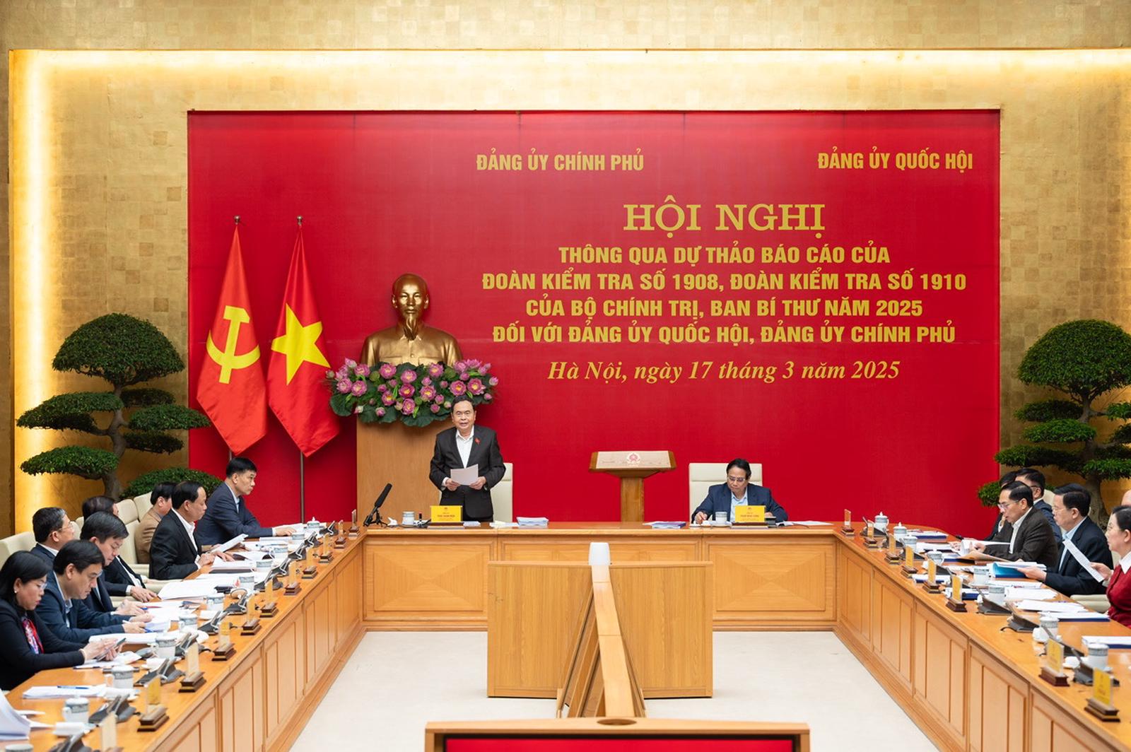 Chiều 17/3, Đảng uỷ Chính phủ và Đảng uỷ Quốc hội tổ chức Hội nghị thông qua dự thảo Báo cáo của Đoàn Kiểm tra số 1908, Đoàn kiểm tra số 1910 của Bộ Chính trị, Ban Bí thư năm 2025 với Đảng uỷ Quốc hội, Đảng uỷ Chính phủ.
