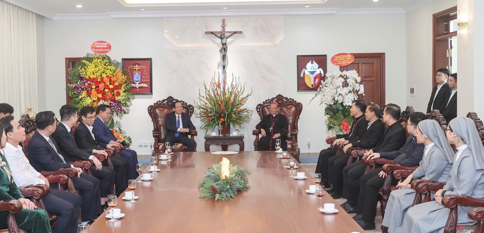 Thay mặt cho các linh mục, tu sĩ và giáo dân, Đức Tổng Giám mục Vũ Văn Thiên bày tỏ sự cảm ơn sâu sắc tới sự quan tâm của Đảng, Nhà nước đối với đồng bào Công giáo, đặc biệt trong mỗi dịp Lễ Giáng sinh, đón năm mới.