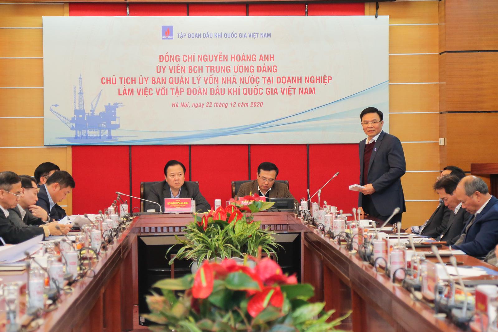 Nhấn mạnh Petrovietnam là doanh nghiệp lớn, chiếm tỉ lệ vốn lớn nhất trong Ủy ban cũng như giữ vai trò quan trọng của nền kinh tế đất nước, trong thời gian tới, để đảm bảo cho Petrovietnam được hoạt động hiệu quả, thể hiện đúng vị trí quan trọng của mình, Chủ tịch UBQLVNN Nguyễn Hoàng Anh cho biết Ủy ban sẽ tiếp tục đồng hành cùng Petrovietnam tập trung, quyết liệt xử lý những vướng mắc; đồng thời đề nghị hai bên cùng xem xét, thảo luận để đưa ra một cơ chế phối hợp hiệu quả, đồng bộ để công việc liên quan được giải quyết nhanh chóng, thuận tiện.