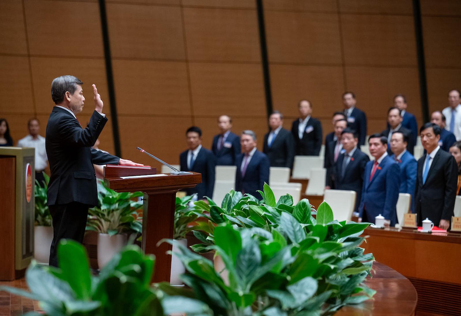 Tân Chánh án TAND Tối cao Lê Minh Trí tuyên thệ. Ảnh: P.Thắng