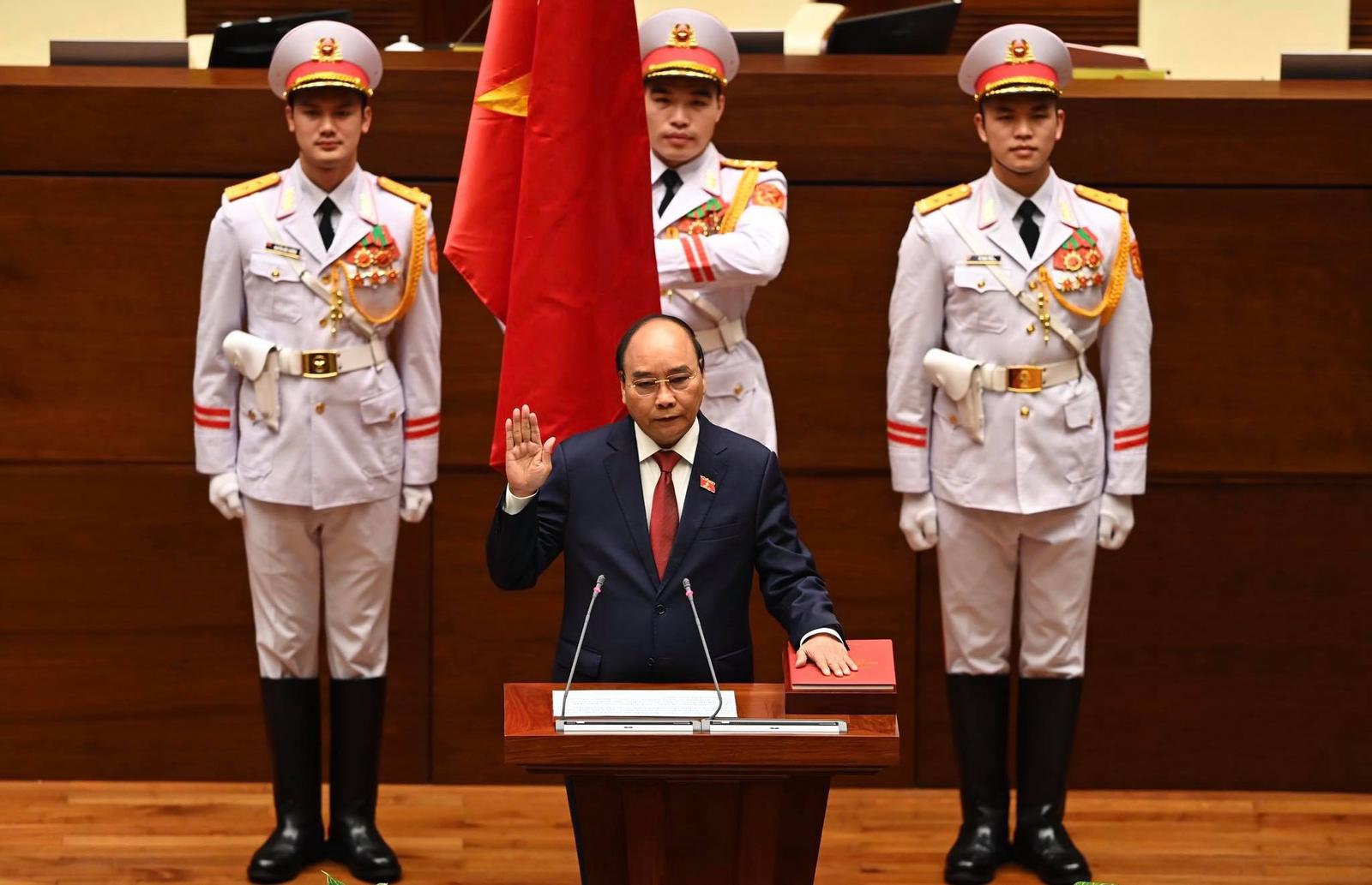 Dưới lá cờ đỏ sao vàng, ông Nguyễn Xuân Phúc hứa trước trước Quốc hội và Nhân dân cả nước, sẽ không ngừng tu dưỡng đạo đức, phẩm chất, tận tâm, tận lực, trách nhiệm, cần kiệm, liêm chính, chí công, vô tư; thực hiện đầy đủ nhiệm vụ và quyền hạn của Chủ tịch nước được Hiến pháp và pháp luật quy định.