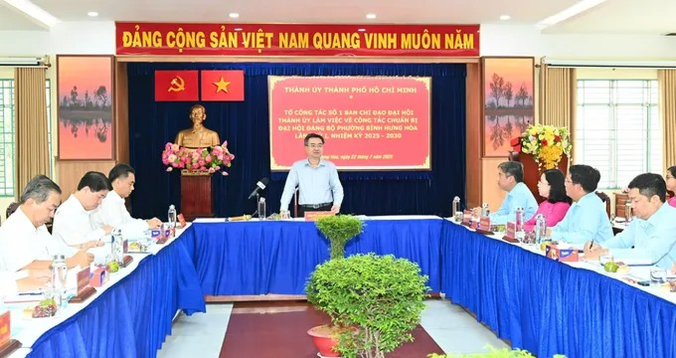 (Thanh tra) - Ngày 22/7, Tổ công tác số 1 Ban Chỉ đạo Đại hội của Thành ủy Thành phố Hồ Chí Minh đã có buổi làm việc với Ban Thường vụ Đảng ủy phường Bình Hưng Hòa về công tác chuẩn bị tổ chức Đại hội Đảng bộ phường nhiệm kỳ 2025 - 2030.