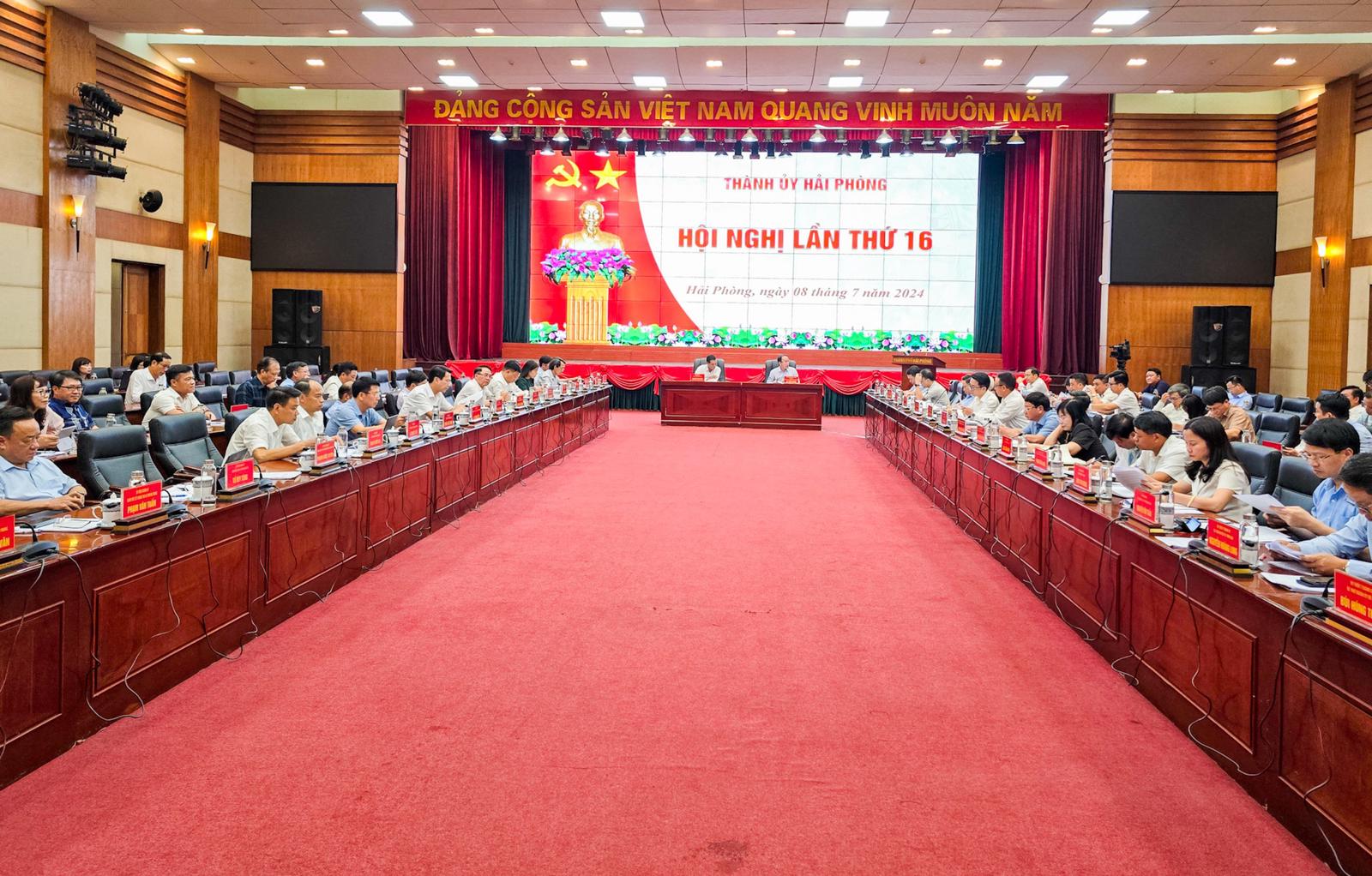 Chiều 8/7, Thành ủy Hải Phòng tổ chức Hội nghị lần thứ 16 cho ý kiến theo Quy chế làm việc về 6 nội dung: Kiểm điểm thực hiện nhiệm vụ 6 tháng đầu năm; phương hướng nhiệm vụ 6 tháng cuối năm 2024; Nghe báo cáo kết quả triển khai thực hiện một số nhiệm vụ cấp thiết, trọng tâm cần thực hiện từ nay đến hết nhiệm kỳ Đại hội XVI Đảng bộ thành phố; Cho ý kiến về kế hoạch của Ban Chấp hành Đảng bộ thành phố về tổ chức. Đại hội Đảng bộ các cấp, Đại hội Đảng bộ thành phố lần thứ XVII, tiến tới Đại hội Đại biểu toàn quốc lần thứ XIV của Đảng; Cho ý kiến về công tác tổ chức cán bộ 6 tháng đầu năm do Ban Thường vụ thực hiện theo phân cấp; Công bố quyết định của Ban Bí thư về công tác cán bộ; Tặng bằng khen của Ban Thường vụ cho các Đảng bộ cấp trên cơ sở “Hoàn thành xuất sắc nhiệm vụ” năm 2023…