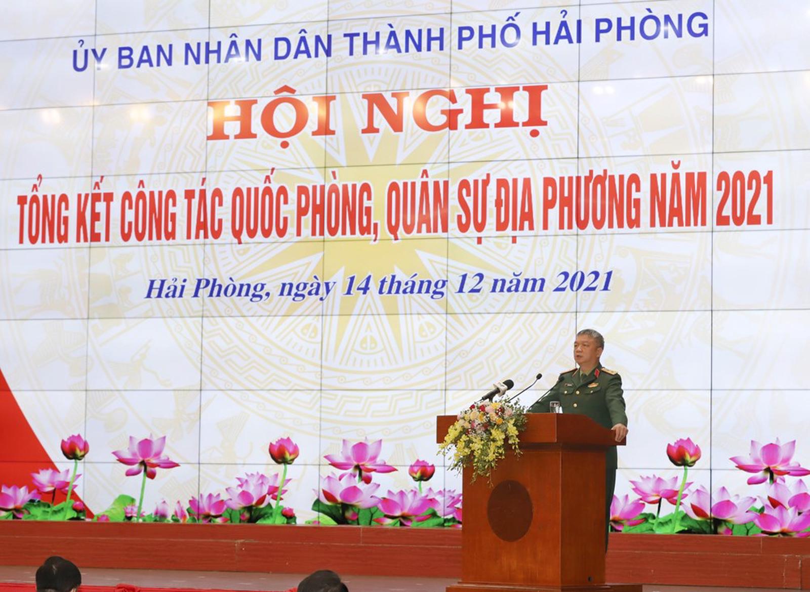 Phát biểu tại hội nghị, Trung tướng Nguyễn Quang Ngọc, Tư lệnh Quân khu 3 thống nhất nội dung báo cáo tổng kết của UBND TP, đồng thời ghi nhận và đánh giá cao công tác lãnh đạo chỉ đạo của TP, các kết quả nhiệm vụ quân sự quốc phòng địa phương của TP trong năm 2021, đã chủ động thích ứng trong điều kiện dịch bệnh, góp phần quan trọng trong việc phát triển kinh tế - xã hội.
