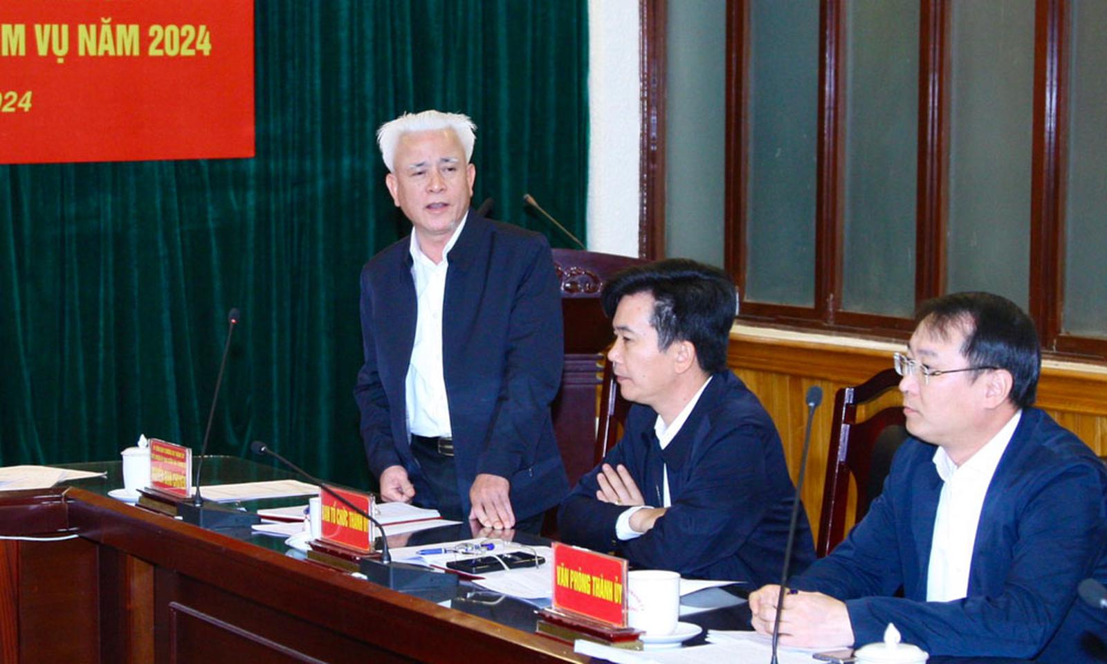 Chủ nhiệm Ủy ban Kiểm tra Thành ủy Nguyễn Đình Chuyến phát biểu: Năm 2023, công tác lãnh đạo, chỉ đạo phát triển kinh tế - xã hội, công tác xây dựng Đảng, hệ thống chính trị, vận động Nhân dân đã được các cấp ủy triển khai thực hiện toàn diện, đồng bộ với quyết tâm cao, có nhiều đổi mới và đạt nhiều kết quả quan trọng.