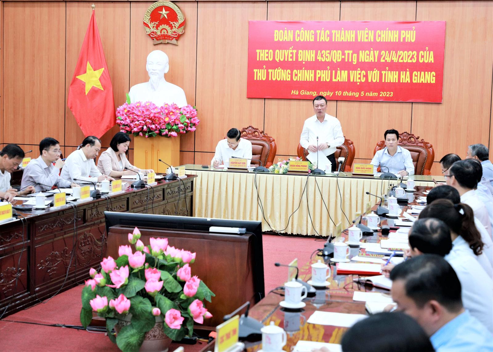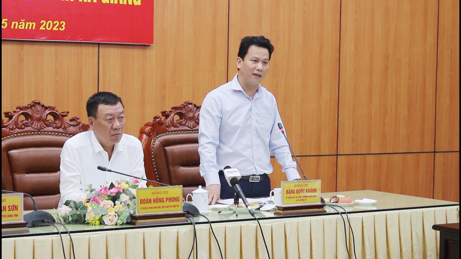 Phát biểu tại buổi làm việc, Bí thư Tỉnh ủy Đặng Quốc Khánh khẳng định, được sự quan tâm của Chính phủ, các bộ, ngành Trung ương cùng với sự đoàn kết, đồng thuận của cả hệ thống chính trị, tỉnh Hà Giang đã đạt được nhiều kết quả tích cực trên các lĩnh vực. Những năm qua, Hà Giang luôn quan tâm, chỉ đạo quyết liệt công tác giải ngân vốn đầu tư công; đẩy nhanh tiến độ triển khai các tiểu dự án thuộc 3 chương trình mục tiêu quốc gia gắn với công tác kiểm tra, giám sát nhằm đảm bảo thực hiện các nội dung đúng quy trình, quy định, đúng pháp luật; quan tâm công tác hỗ trợ nguồn lực trong đầu tư xây dựng cơ bản; thu hút các nhà đầu tư vào lĩnh vực du lịch trên quan điểm giữ gìn phát huy bản sắc văn hóa của các dân tộc và thân thiện với môi trường.