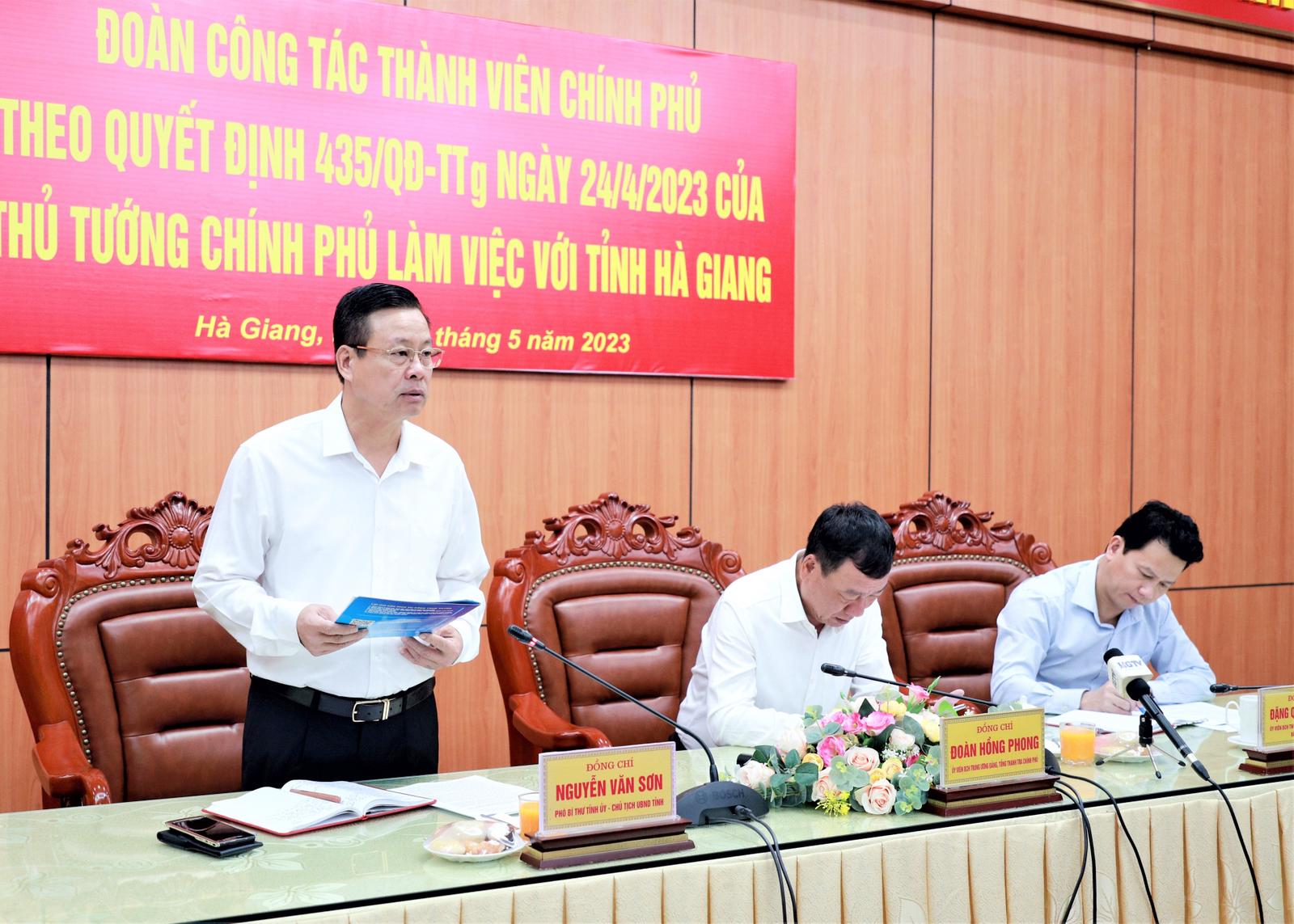 Phó Bí thư Tỉnh ủy, Chủ tịch UBND tỉnh Hà Giang Nguyễn Văn Sơn phát biểu tại buổi làm việc. Ảnh: LP