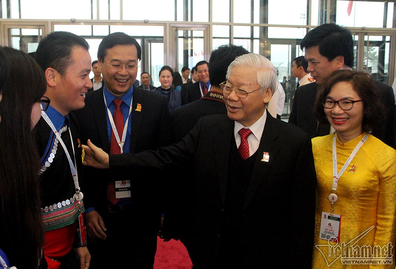 Tổng bí thư Nguyễn Phú Trọng trò chuyện với các đại biểu