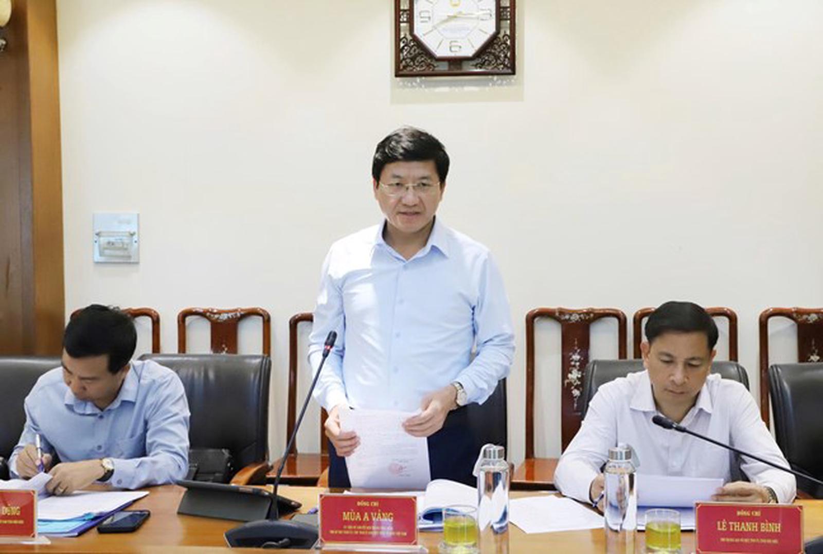 Ông Mùa A Vảng, Ủy viên dự khuyết Trung ương Đảng, Phó Bí thư, Chủ tịch Ủy ban MTTQ Việt Nam tỉnh Điện Biên phát biểu tại cuộc làm việc. Ảnh: Hương Diệp