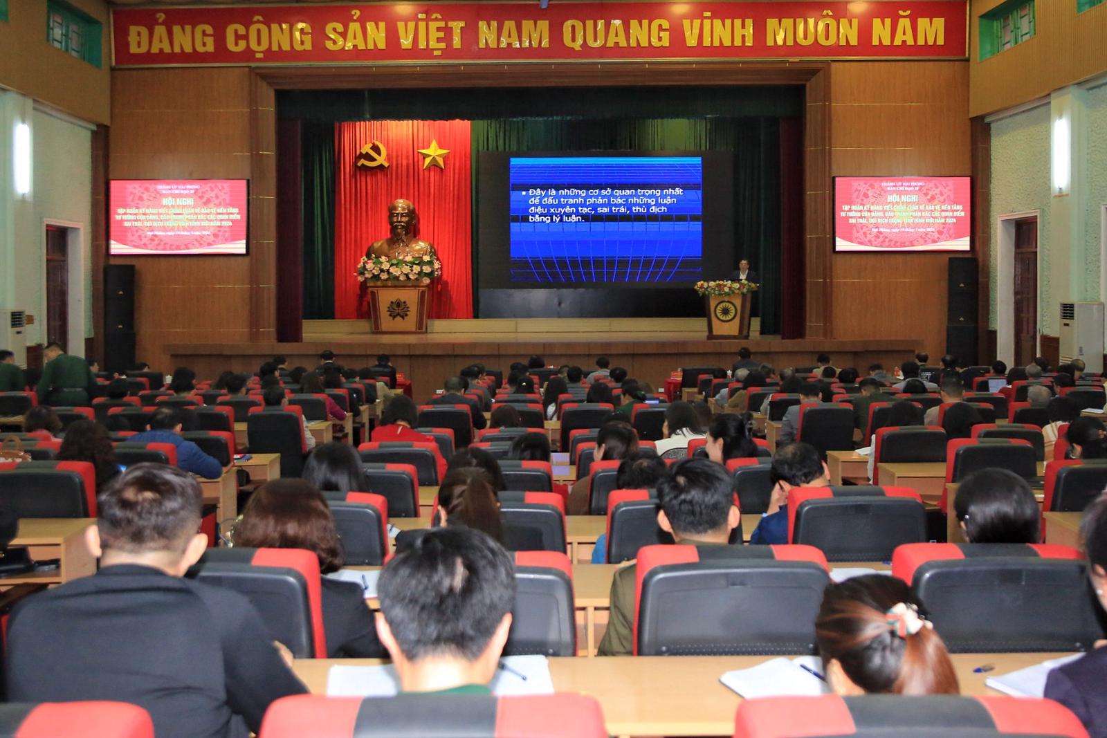 Tại hội nghị, tiến sĩ Lê Hải, Tạp chí Cộng sản tập huấn kỹ năng viết chính luận cho gần 400 đại biểu về viết bài trên tạp chí, tạp chí điện tử, báo in, báo điện tử khi tham gia Cuộc thi chính luận về bảo vệ nền tảng tư tưởng của Đảng. Qua đó, nâng cao kỹ năng sáng tác tác phẩm báo chí phản bác các quan điểm, thông tin sai trái, phục vụ tốt hơn hoạt động của Ban Chỉ đạo 35 thành phố, các địa phương, đơn vị.