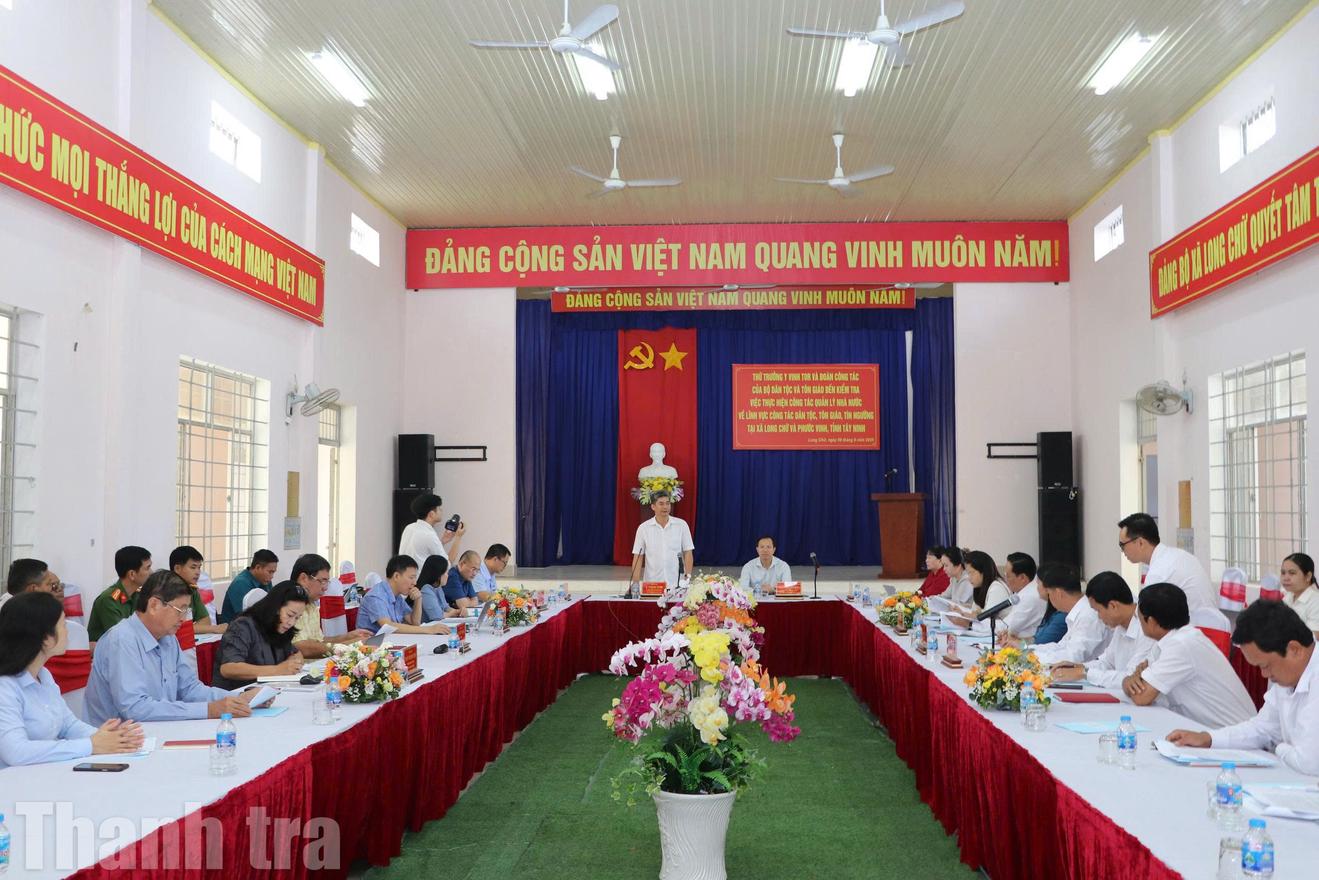Tại buổi làm việc, đại diện 2 xã Long Chữ và Phước Vinh báo cáo tình hình triển khai mô hình chính quyền 2 cấp, cũng như kết quả thực hiện quản lý Nhà nước về công tác dân tộc, tôn giáo, tín ngưỡng.