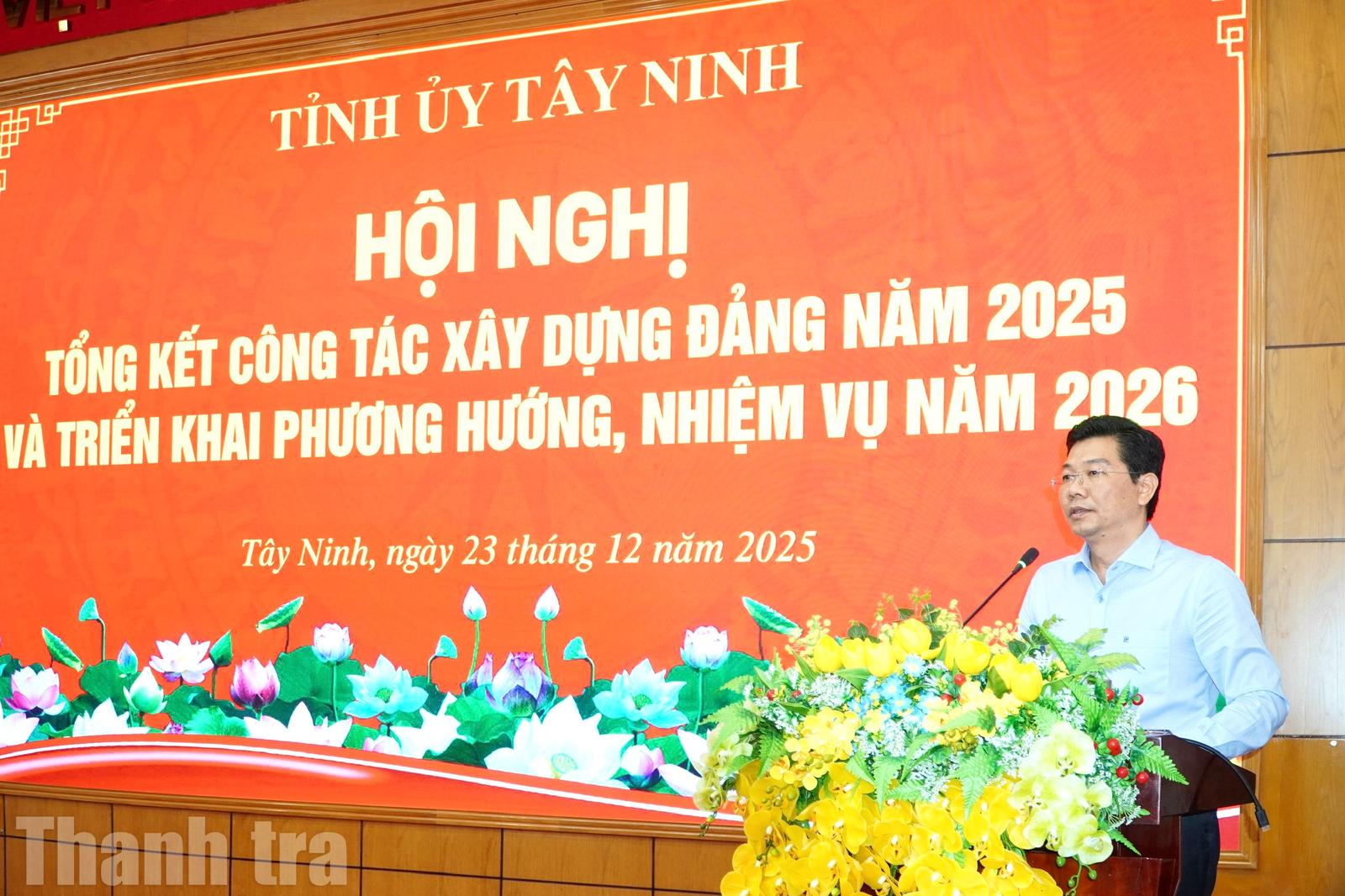 Báo cáo tại hội nghị cho thấy trong năm qua, Ban Thường vụ Tỉnh ủy Tây Ninh đã phát huy tinh thần đoàn kết, thống nhất, luôn bám sát các chủ trương, nghị quyết, kết luận của Trung ương về công tác xây dựng Đảng, tập trung chỉ đạo thực hiện toàn diện nhiệm vụ công tác xây dựng Đảng. Công tác tư tưởng, chính trị và đạo đức được triển khai đồng bộ, kịp thời, ngày càng đi vào chiều sâu. Cùng với đó, công tác dân vận được tăng cường, mối quan hệ gắn bó giữa Đảng với Nhân dân tiếp tục được củng cố, nhất là trong lãnh đạo, chỉ đạo thực hiện các chủ trương lớn về sắp xếp tổ chức bộ máy tinh gọn, hiệu quả.