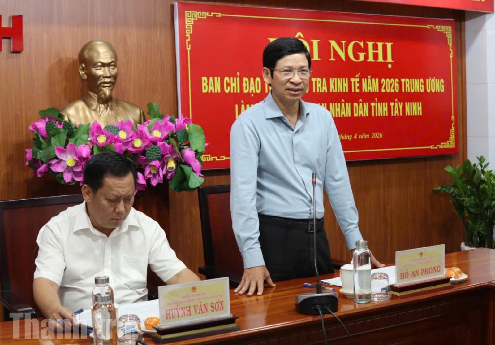 (Thanh tra) - Ngày 9/4, Đoàn Chỉ đạo số 8 thuộc Ban Chỉ đạo Tổng điều tra kinh tế năm 2026 Trung ương do Thứ trưởng Bộ Văn hóa, Thể thao và Du lịch Hồ An Phong - Ủy viên Ban Chỉ đạo Tổng điều tra kinh tế Trung ương, Trưởng đoàn, đã có buổi làm việc kiểm tra, giám sát công tác triển khai 2026 tổng điều tra kinh tế tại tỉnh Tây Ninh.