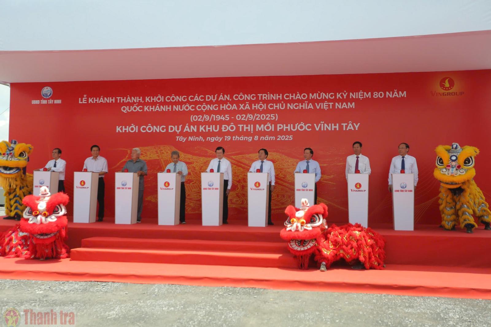 (Thanh tra) - Sáng 19/8, cùng với các địa phương trong cả nước, tỉnh Tây Ninh đã tổ chức khởi công các công trình, dự án trọng điểm chào mừng kỷ niệm 80 năm Quốc khánh nước Cộng hòa xã hội chủ nghĩa Việt Nam (2/9/1945-2/9/2025).