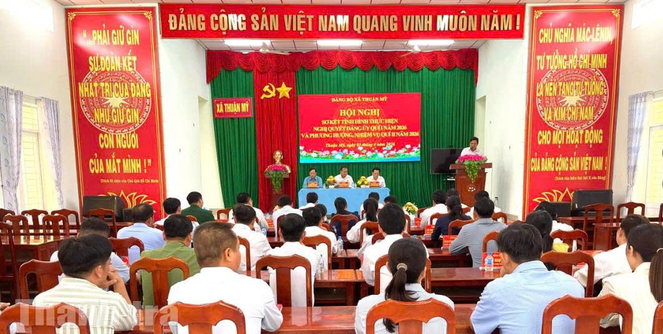 Đảng ủy xã Thuận Mỹ tổ chức Hội nghị sơ kết tình hình thực hiện Nghị quyết Đảng ủy quý I và triển khai nhiệm vụ trọng tâm quý II/2026. Ảnh: Thu Huyền
