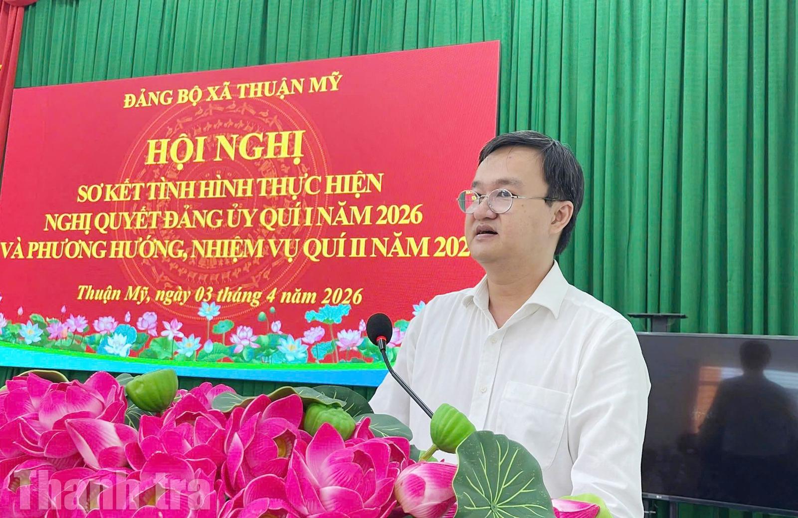 Ngày 3/4, Đảng ủy xã Thuận Mỹ tổ chức Hội nghị sơ kết tình hình thực hiện Nghị quyết Đảng ủy quý I và triển khai nhiệm vụ trọng tâm quý II/2026. Ông Phan Huỳnh Quốc Vinh - Ủy viên Ban Thường vụ Tỉnh ủy, Chánh Thanh tra tỉnh Tây Ninh dự và phát biểu chỉ đạo hội nghị.