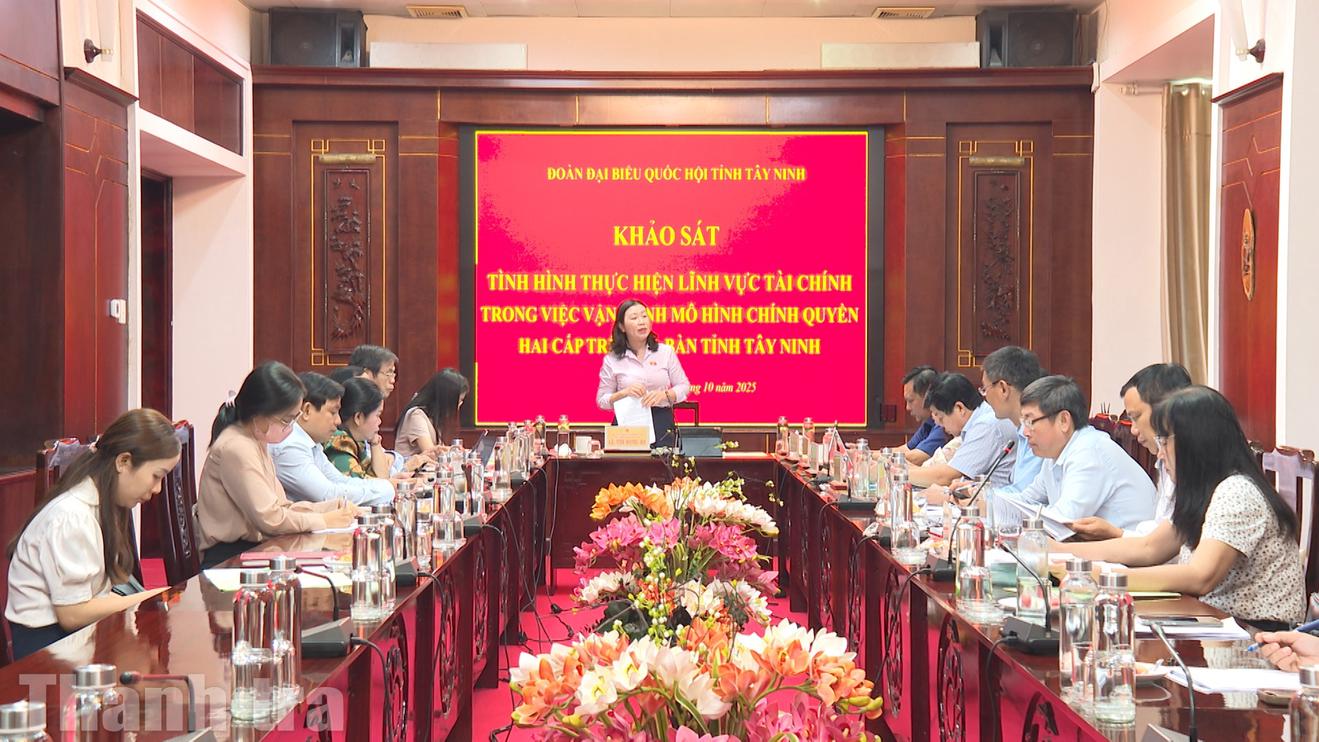 (Thanh tra) - Ngày 15/10, Đoàn khảo sát do Phó Trưởng đoàn chuyên trách Đoàn đại biểu Quốc hội (ĐBQH) tỉnh Tây Ninh Lê Thị Song An làm Trưởng đoàn đã làm việc với UBND tỉnh Tây Ninh cùng các sở, ngành liên quan để đánh giá tình hình thực hiện lĩnh vực tài chính trong quá trình vận hành mô hình chính quyền địa phương 2 cấp. Phó Chủ tịch UBND tỉnh Huỳnh Văn Sơn chủ trì tiếp và làm việc với Đoàn.