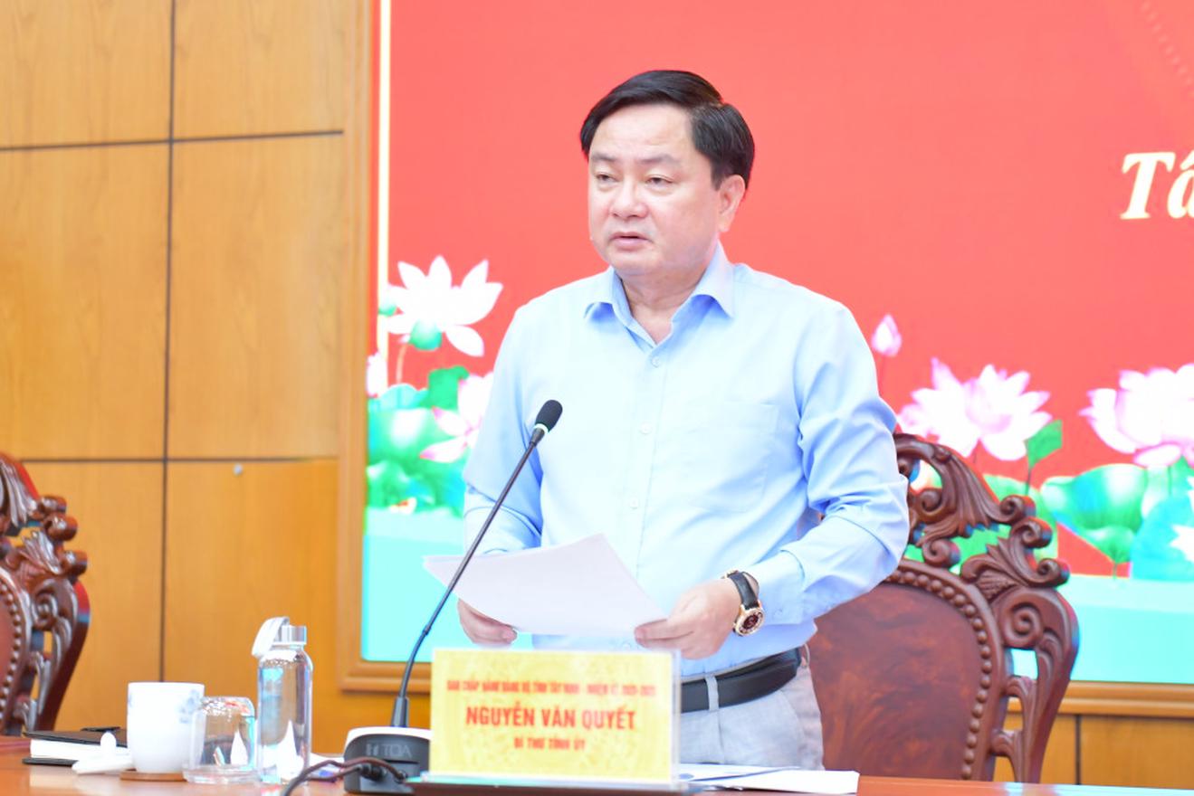 Bí thư Tỉnh ủy Tây Ninh Nguyễn Văn Quyết phát biểu tại hội nghị. Ảnh: baolongan.vn