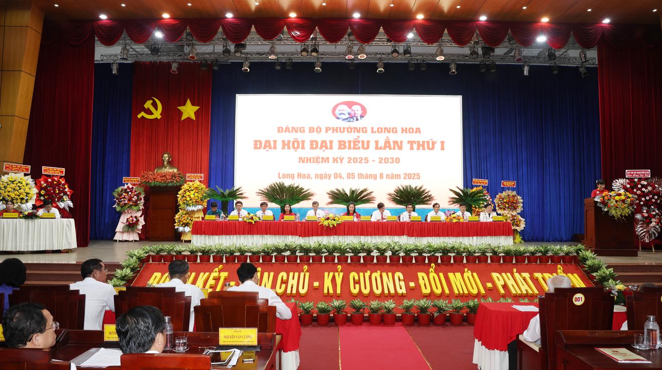(Thanh tra) - Sau 2 ngày làm việc, Đại hội đại biểu Đảng bộ phường Long Hoa lần thứ I, nhiệm kỳ 2025 - 2030 đã hoàn thành toàn bộ nội dung, chương trình đề ra và tiến hành bế mạc vào ngày 5/8. Đây là Đảng bộ được Ban Thường vụ Tỉnh uỷ Tây Ninh chọn tổ chức Đại hội điểm Đảng bộ cấp trên trực tiếp cơ sở của tỉnh.