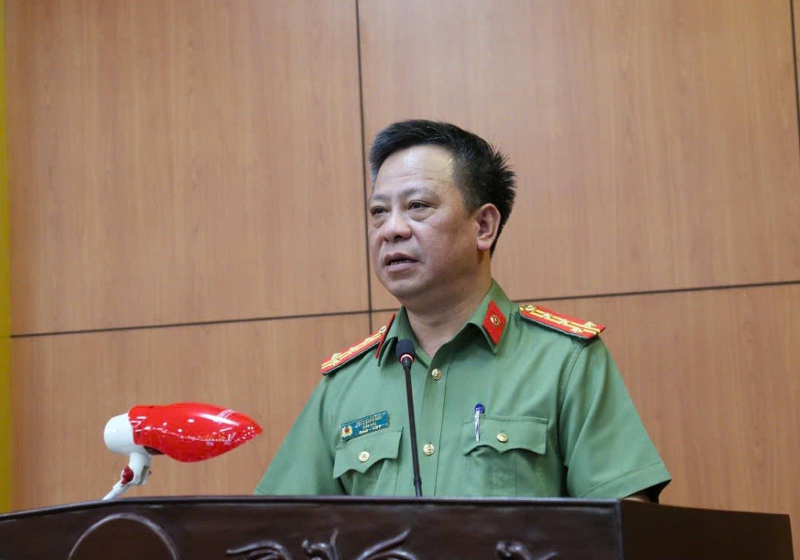 Đại tá Trần Xuân Ánh, Giám đốc Công an tỉnh Thái Bình phát biểu tại hội nghị. Ảnh: TĐ