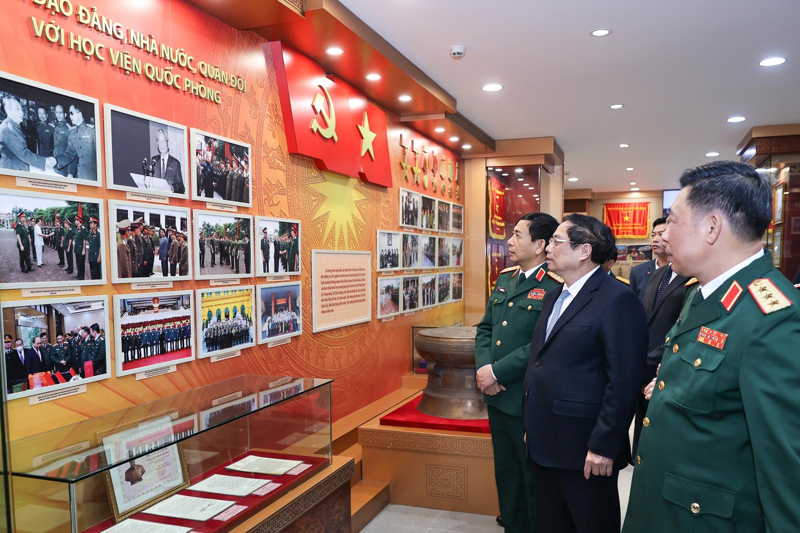 Thay mặt Chính phủ, Thủ tướng Phạm Minh Chính chúc mừng và ghi nhận những thành tích xuất sắc mà Học viện Quốc phòng đã đạt được qua các thời kỳ.