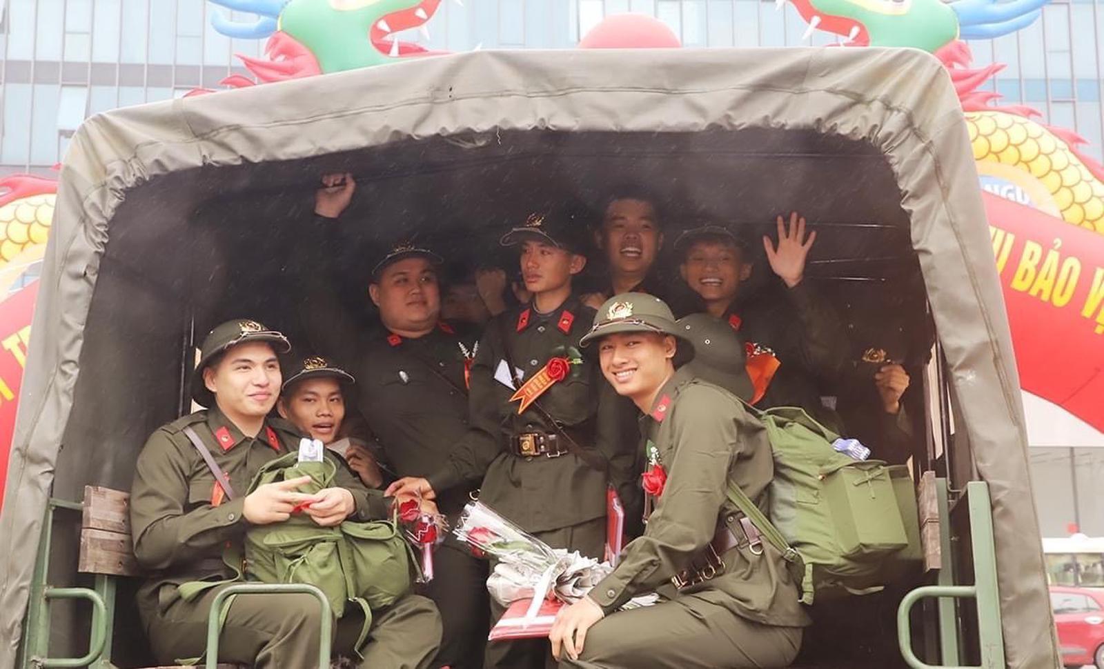 Các tân binh ở thị xã Hồng Lĩnh, tỉnh Hà Tĩnh sẵn sàng làm nhiệm vụ. Ảnh: CTV