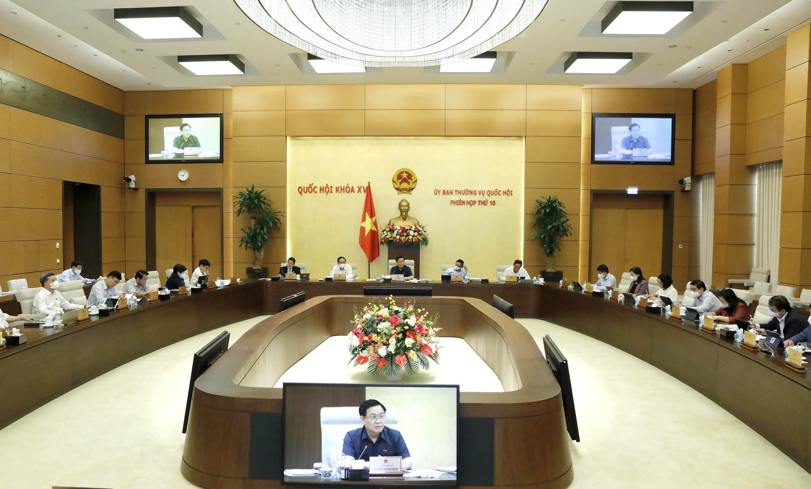 Toàn cảnh phiên họp thứ 10, Ủy ban Thường vụ Quốc hội cho ý kiến báo cáo của Chính phủ về kết quả thực hành tiết kiệm, chống lãng phí năm 2021. Ảnh: Đ.X