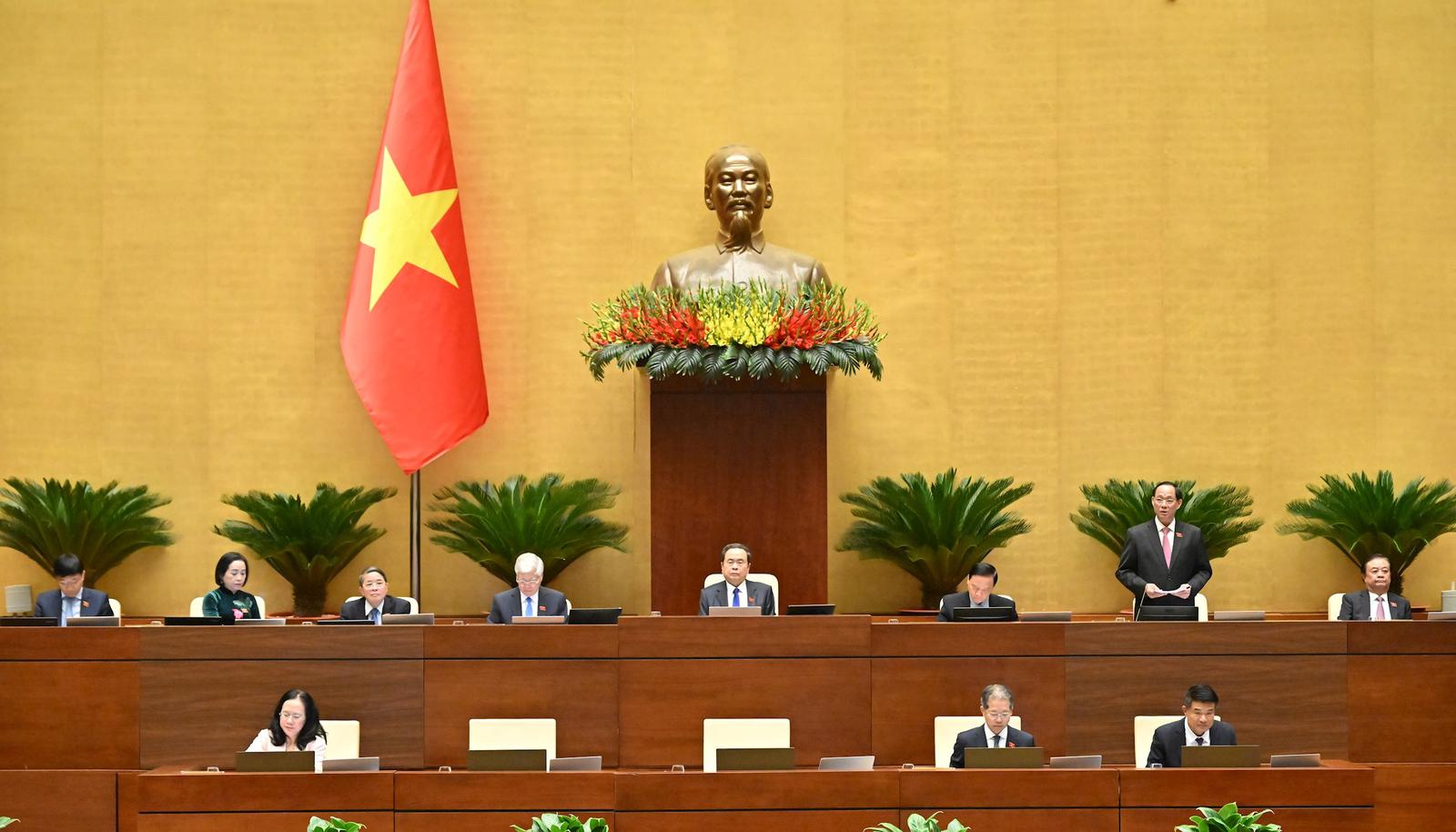Trước khi thảo luận, Quốc hội nghe Phó Thủ tướng Thường trực Chính phủ Nguyễn Hòa Bình trình bày báo cáo tổng hợp việc thực hiện 16 nghị quyết của Quốc hội về giám sát và chất vấn.